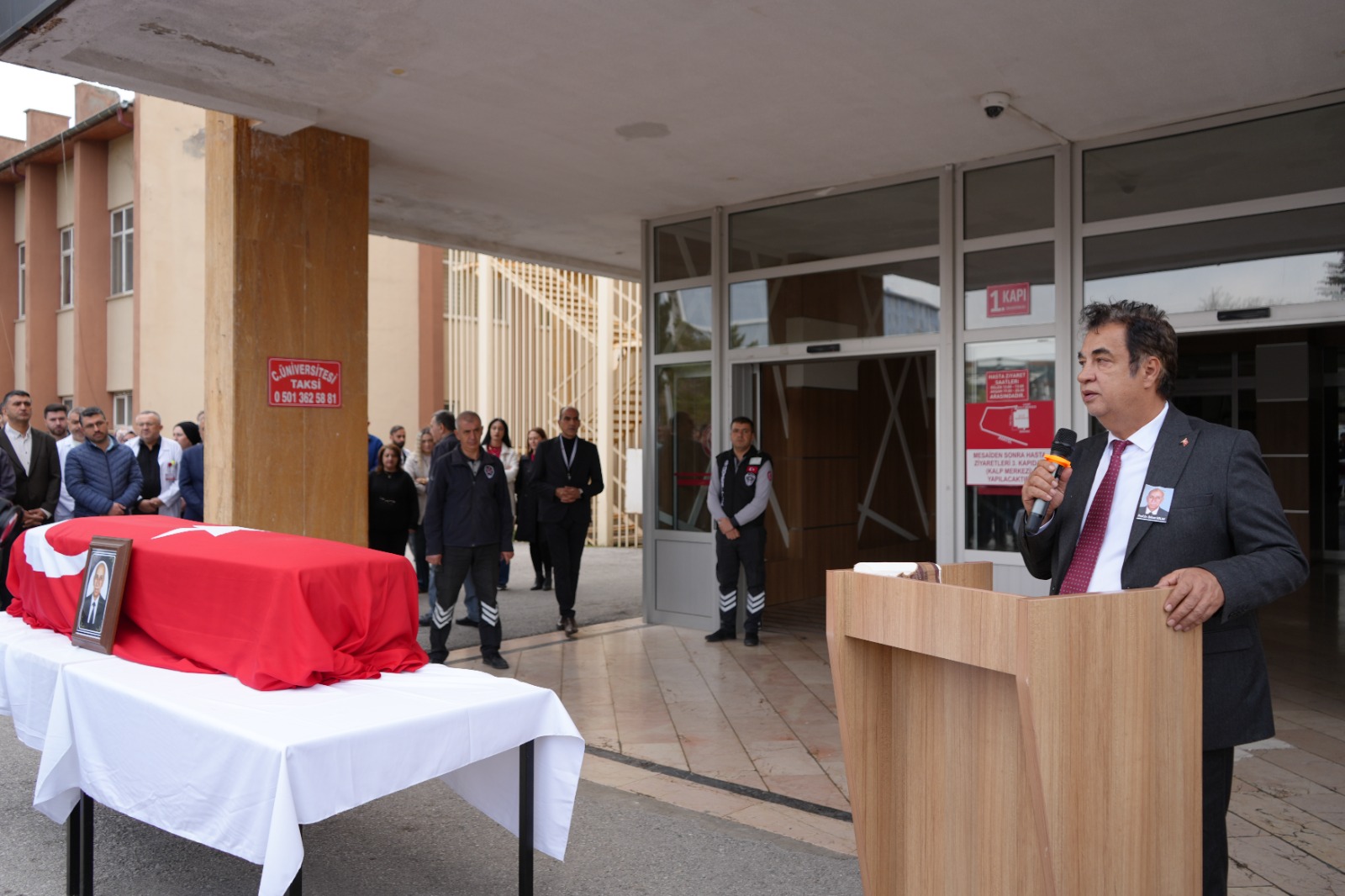 Törende konuşan Rektör Prof. Dr. Ahmet Şengönül ile Üniversite Hastanesi Başhekimi Prof. Dr. Ömer Tamer Doğan, merhum Prof. Dr. Orhan Solak’ın uzun yıllar boyunca üniversiteye ve tıp fakültesine yaptığı değerli katkıları anarak, kendisine Allah’tan rahmet; ailesine ve yakınlarına başsağlığı diledi.