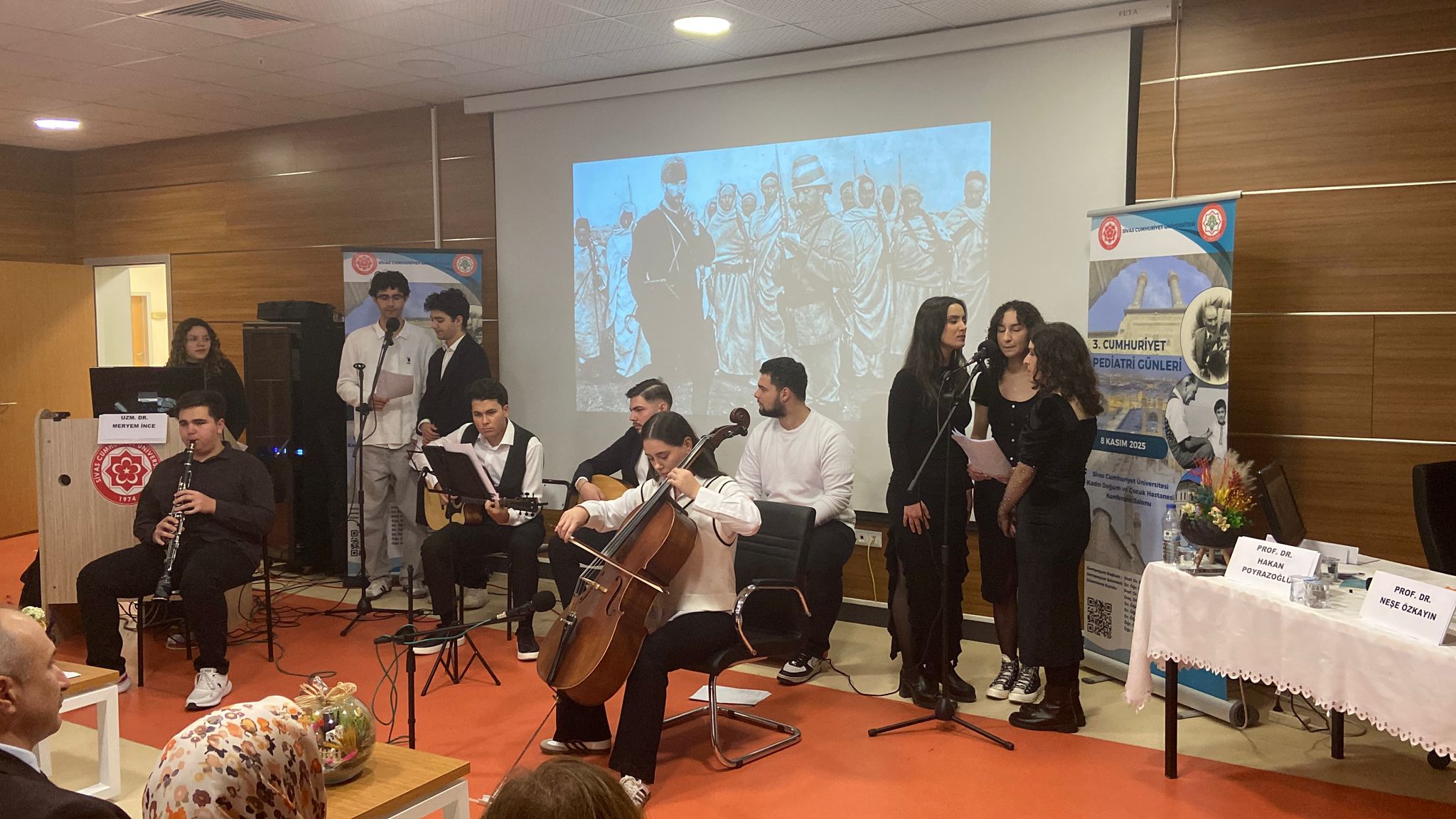 Sempozyum başkanlığını Prof. Dr. Elif Ünver Korgalı’nın üstlendiği programda, Cumhuriyetimizin kuruluşunun 102. yılı ve Gazi Mustafa Kemal Atatürk’ün ebediyete intikalinin 87. yılı saygı ve minnetle anıldı. Etkinlik, saygı duruşu ve İstiklal Marşı’nın okunmasıyla başladı; ardından Tıp Fakültesi öğrencilerinin sunduğu mini konser programa renk kattı.