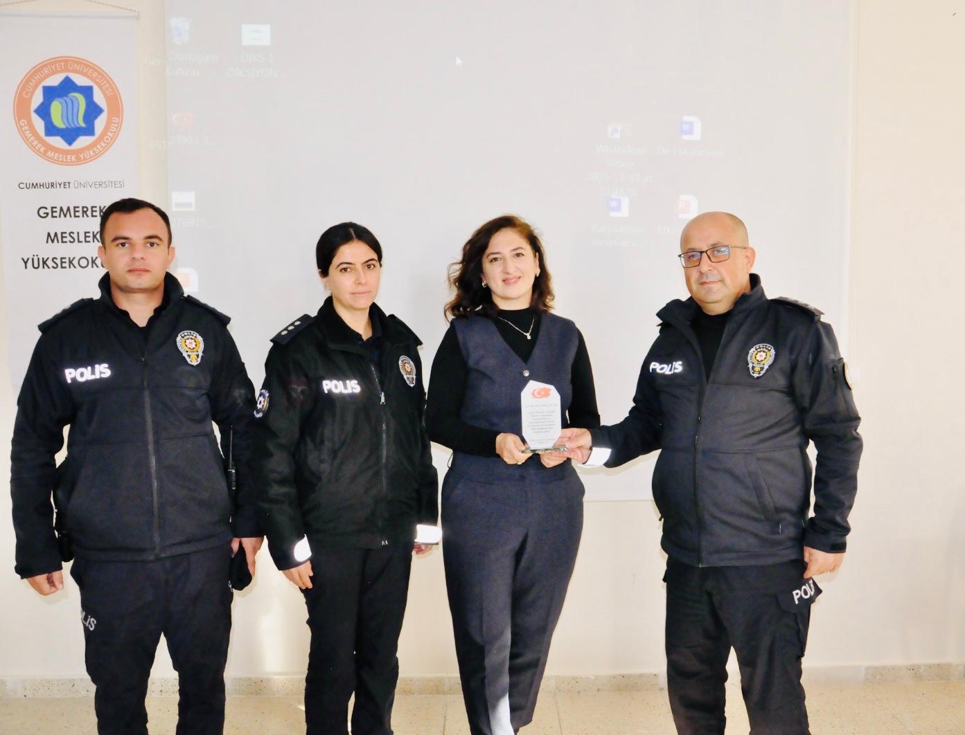 Program sonunda İlçe Emniyet Müdürü Başkomiser Dağıstan Çağıran, katkılarından dolayı Öğr. Gör. Felek’e teşekkür ederek plaket takdim etti.