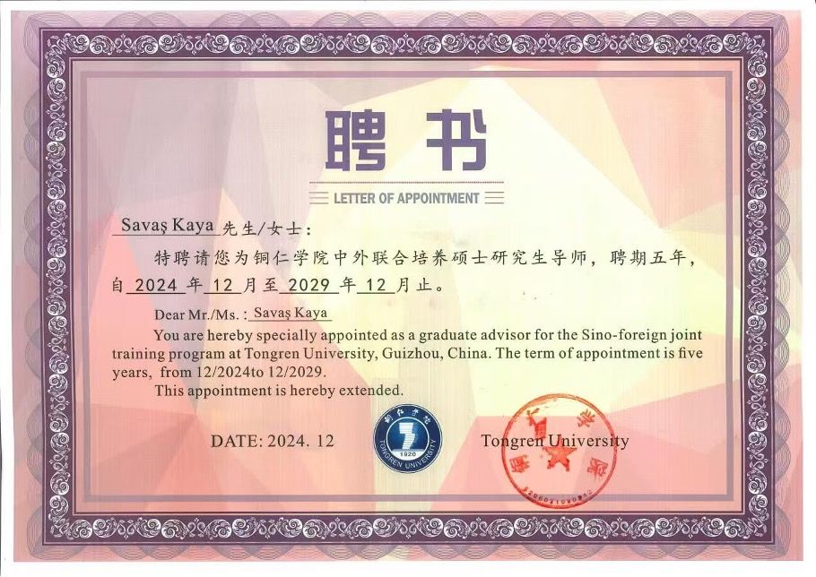 Sivas Cumhuriyet Üniversitesi Fen Fakültesi öğretim üyemiz Prof. Dr. Savaş Kaya, Çin Halk Cumhuriyeti üniversitelerinden Tongren University Senatosu tarafından Uluslararası Danışman (International Mentor) olarak seçildi.