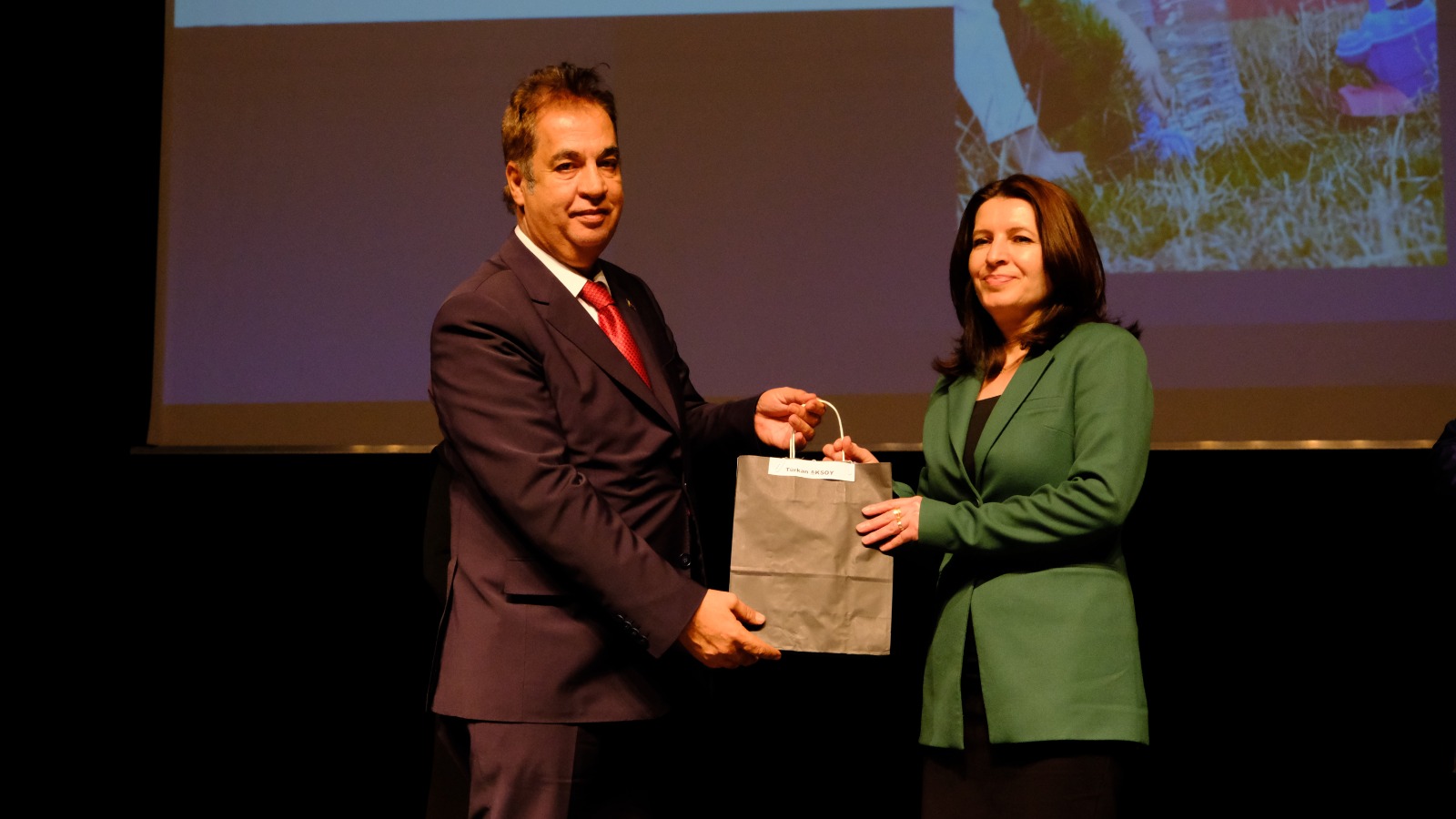 Sivas Cumhuriyet Üniversitesi Rektörü Prof. Dr. Ahmet Şengönül, “Yeşil Vatan” temalı anı fotoğraf yarışmasında derece elde eden öğretmene hediye takdim ederek başarılarını tebrik etti.
