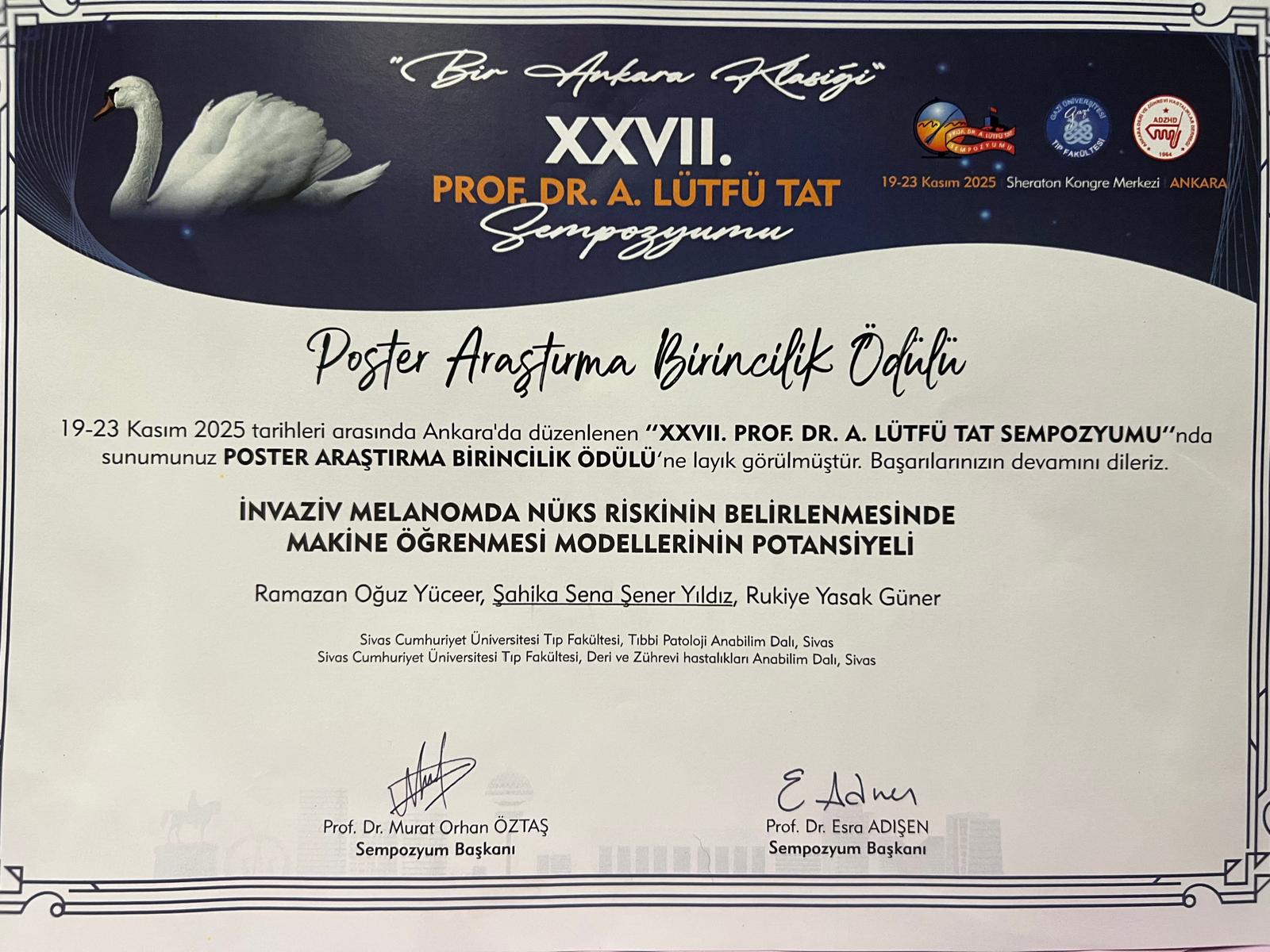 Dr. Şener, “İnvaziv Melanomda Nüks Riskinin Belirlenmesinde Makine Öğrenmesi Modellerinin Potansiyeli” başlıklı çalışmasıyla dermatoloji alanında yenilikçi bir yaklaşım ortaya koydu. Bu başarı, hem bilimsel araştırmaların hem de yapay zekâ uygulamalarının sağlık alanındaki önemini bir kez daha vurguladı.