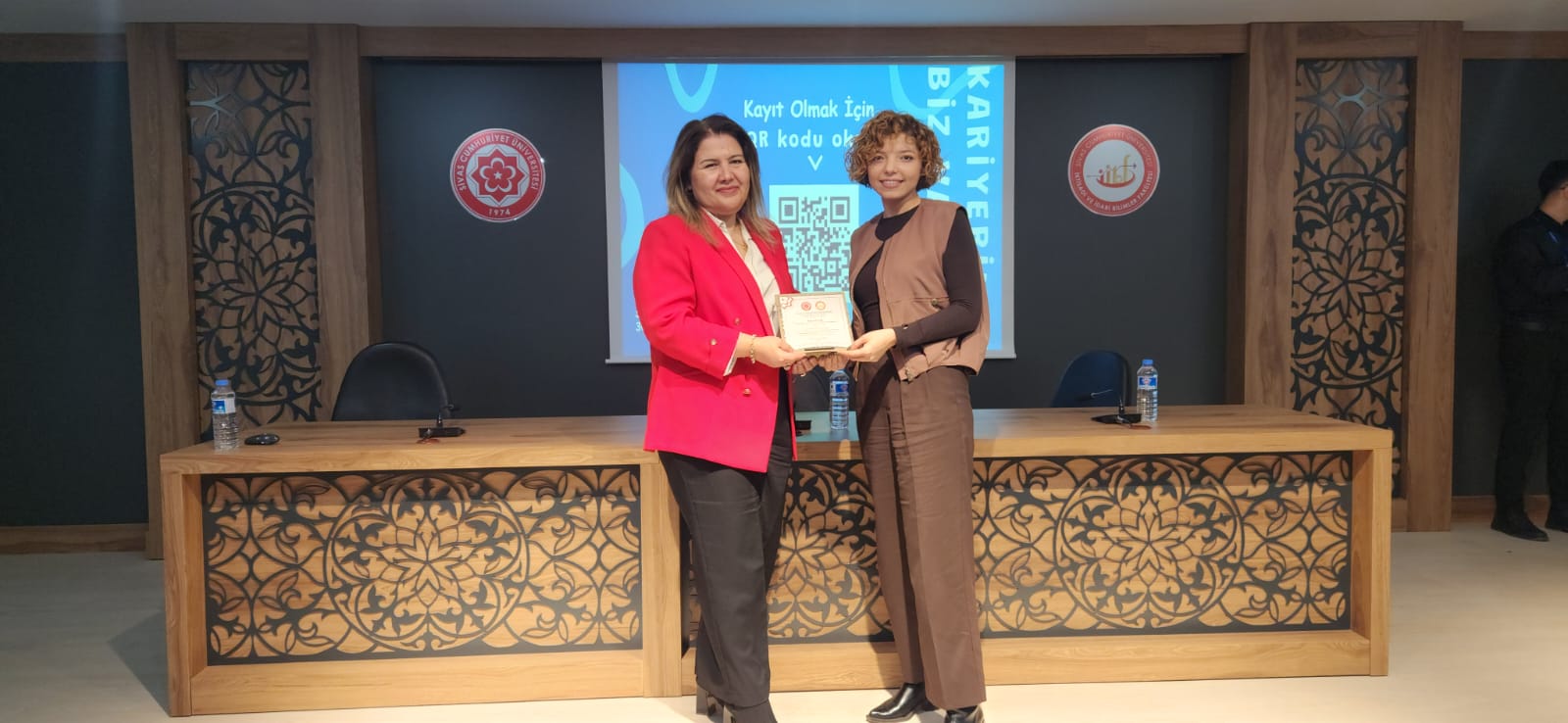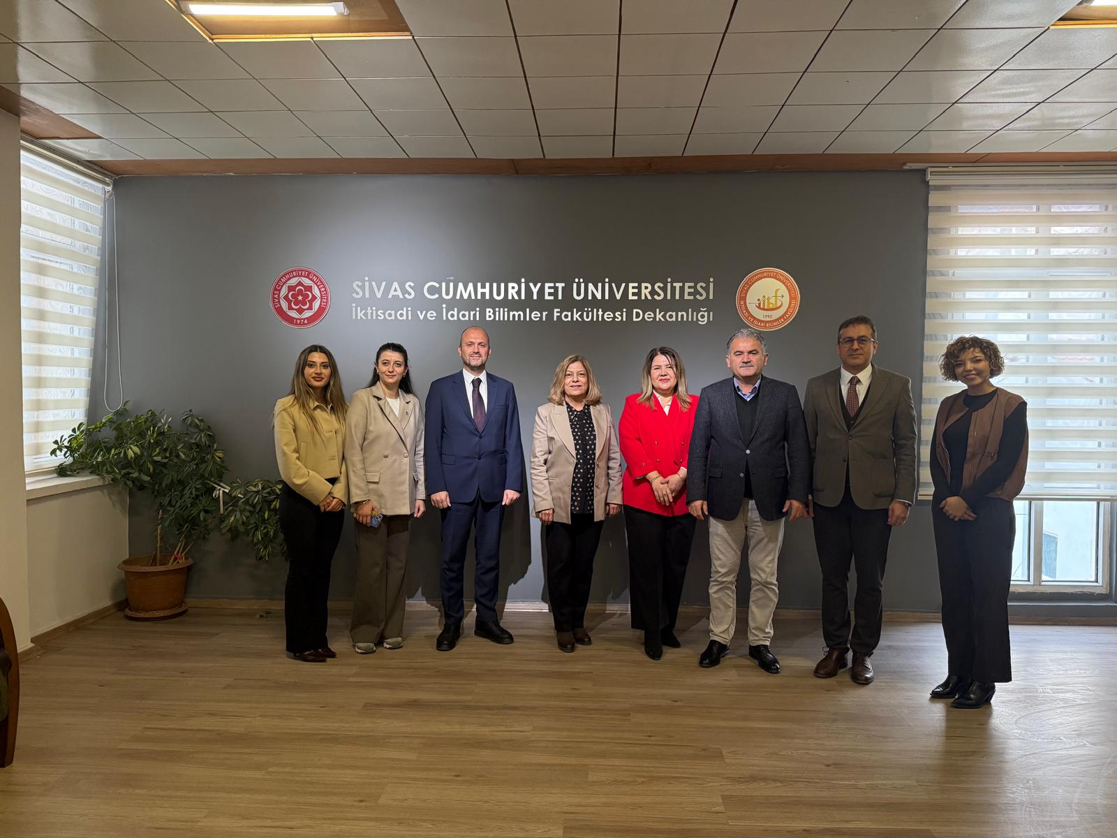 Etkinlik öncesinde Türkiye Sigorta Çalışan ve İşveren Markası Uzmanı Hatice Demir Orhan, Kariyer ve Yetenek Yönetimi Yöneticisi Serap Beyazıt, İşe Alım Kıdemli Uzmanı Büşra Aktaş, Kariyer ve Yetenek Yönetimi Müdürü Burak Büyük, Yıldızeli Meslek Yüksekokulu Müdürü ve Finans ve Bankacılık Bölümü Öğretim Üyesi Doç. Dr. Esengül Salihoğlu ile Finans ve Bankacılık Bölümü Başkanı Prof. Dr. Mehmet Demir, Fakülte Dekanı Prof. Dr. Gülay Ercins ve Dekan Yardımcısı Dr. Öğr. Üyesi Engin Dursun’u makamlarında ziyaret ettiler.