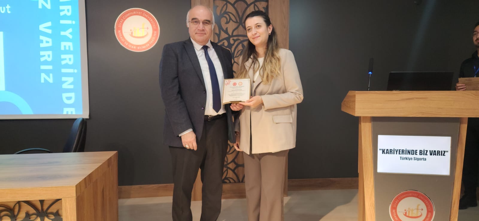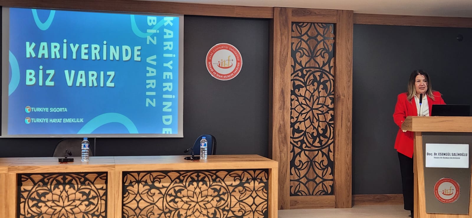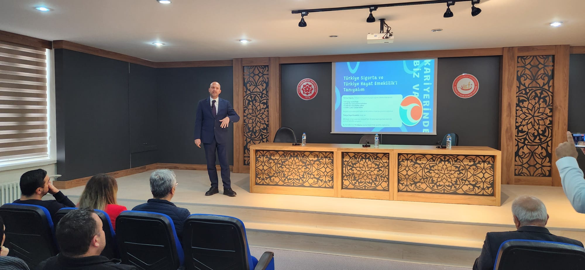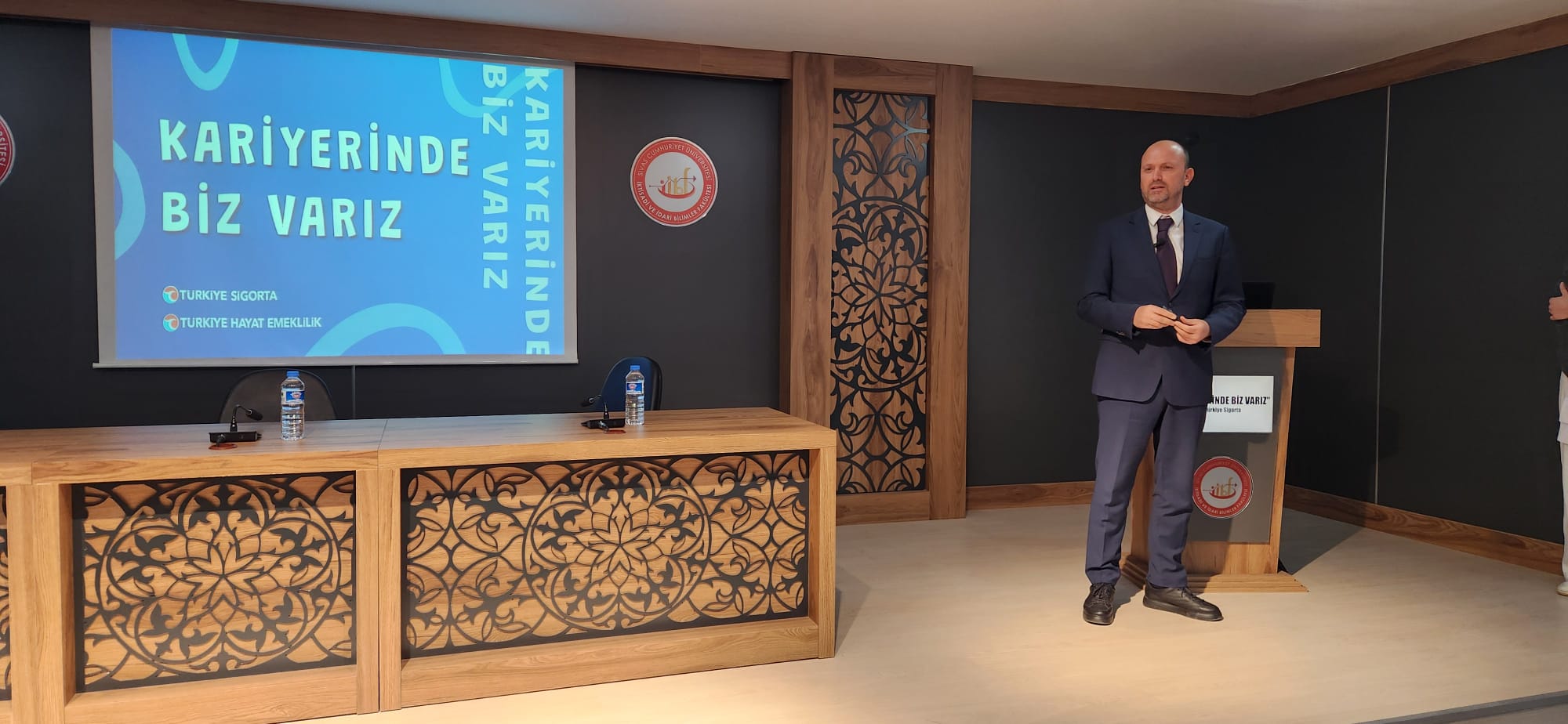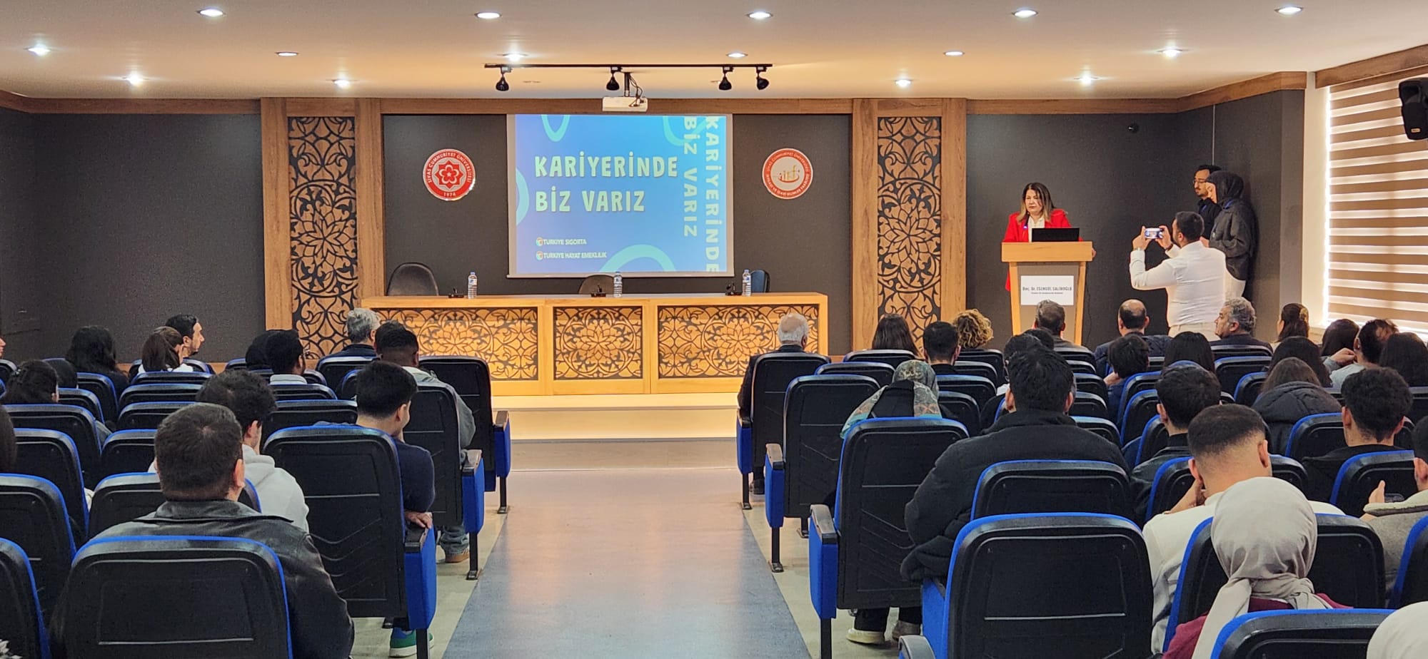 Ardından Prof. Dr. Murat Sarıkaya Konferans Salonu’nda gerçekleştirilen programda öğrencilerimizle bir araya gelen konuklar, kariyer programlaması ve sigorta sektöründe kariyer fırsatları hakkında bilgi verdiler.