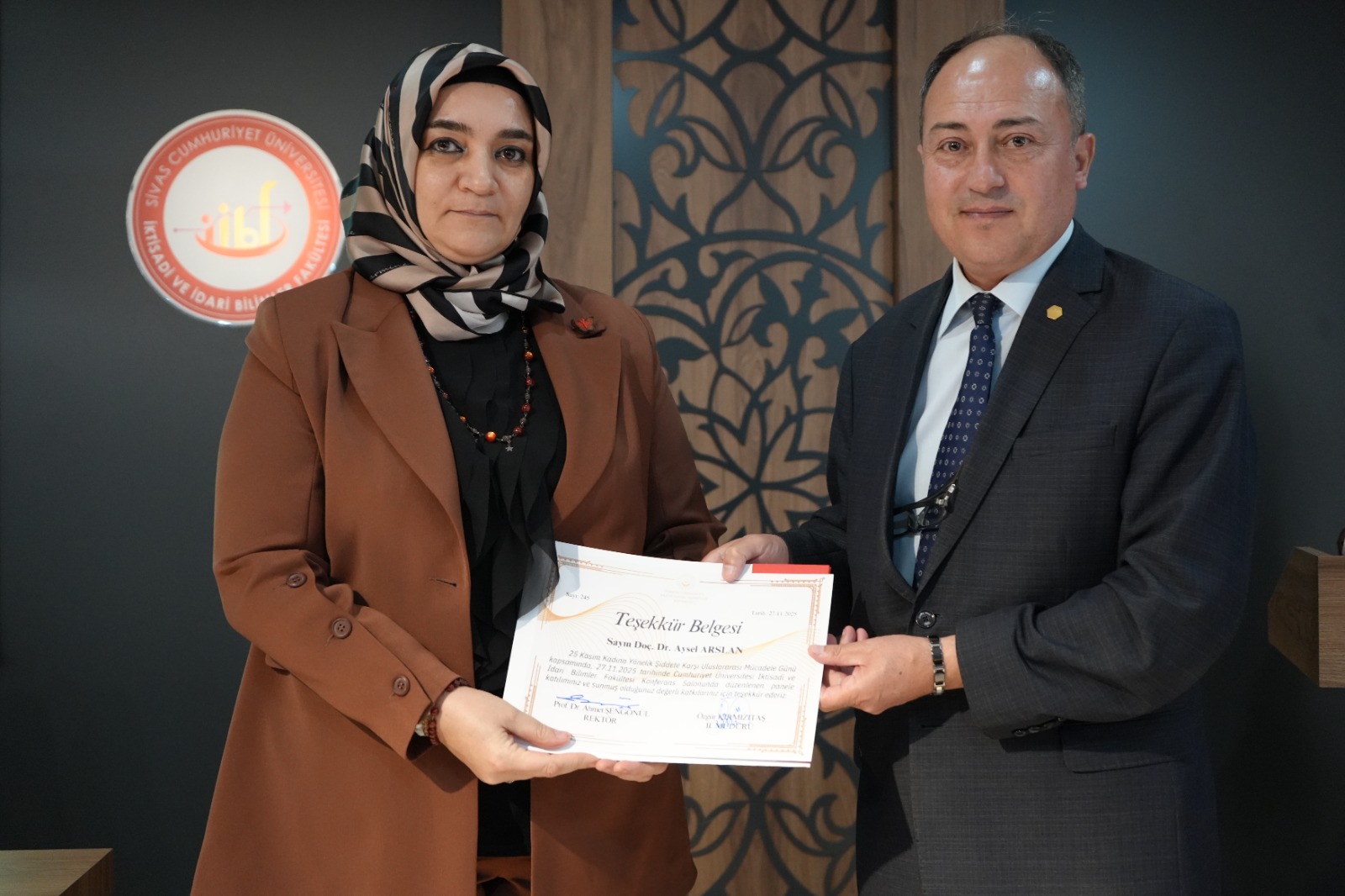 Sivas Cumhuriyet Üniversitesi, “Kadına Yönelik Şiddete Karşı Uluslararası Mücadele Günü” kapsamında farkındalık oluşturmayı amaçlayan bir panele ev sahipliği yaptı. İktisadi ve İdari Bilimler Fakültesi Konferans Salonu’nda düzenlenen programa Sivas Vali Yardımcısı Osman Altın, Sivas Cumhuriyet Üniversitesi Rektör Danışmanı Doç. Dr. Nevzat Balıkçıoğlu, Sivas Aile ve Sosyal Hizmetler İl Müdürü Özgür Kırmızıtaş, Fakülte Dekanı Prof. Dr. Gülay Ercins, akademisyenler, öğrenciler ve çok sayıda davetli katıldı.