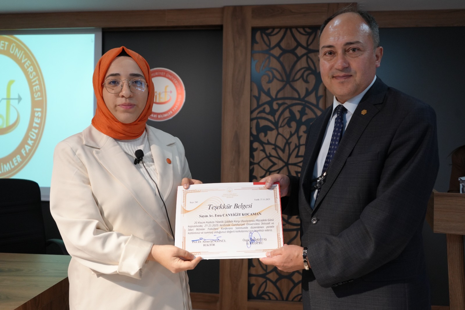 Panelin moderatörlüğünü Prof. Dr. İlkay Noyan Yalman yürütürken, konuşmacılar Doç. Dr. Aysel Arslan, Sosyal Çalışmacı Merve Başpınar ve Avukat Esra Canyiğit Kocaman kadına yönelik şiddeti kendi uzmanlık alanları çerçevesinde değerlendirdi. Panelistler, şiddetin nedenleri, sonuçları ve önleyici müdahaleleri ayrıntılı biçimde ele alarak katılımcılara kapsamlı bir perspektif sundu. Sunumların sonunda, kadına yönelik şiddetle mücadelenin ancak ortak bir bilinç ve kararlı adımlarla sürdürülebileceği mesajı verildi.