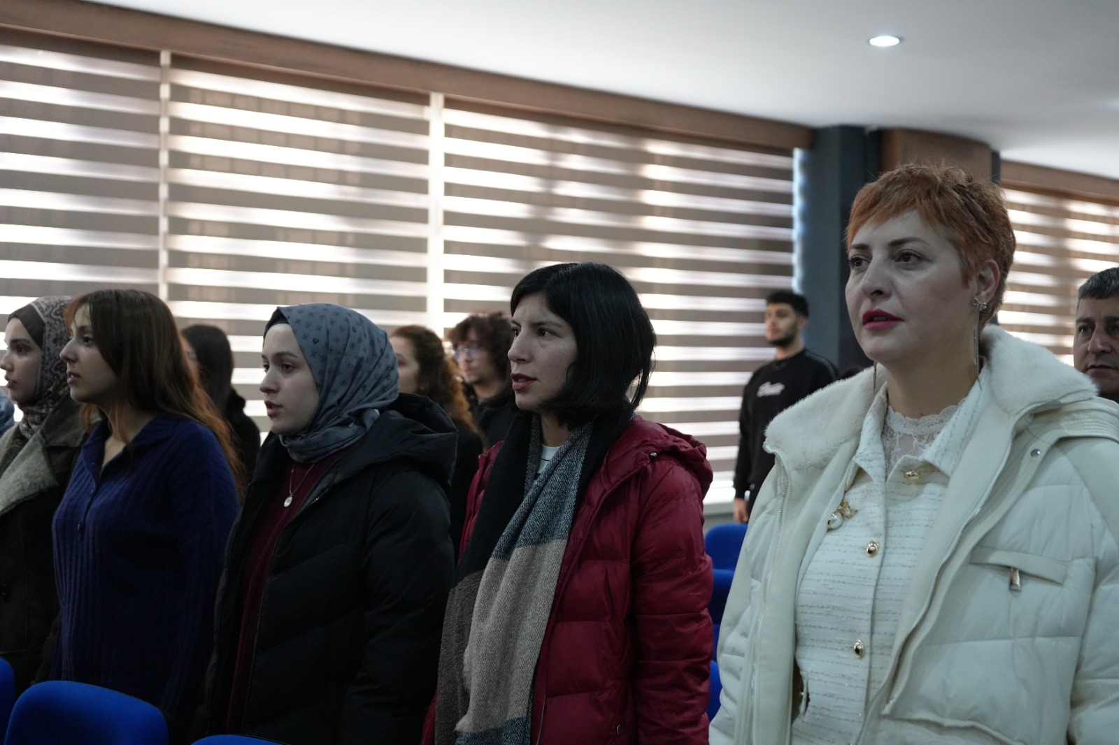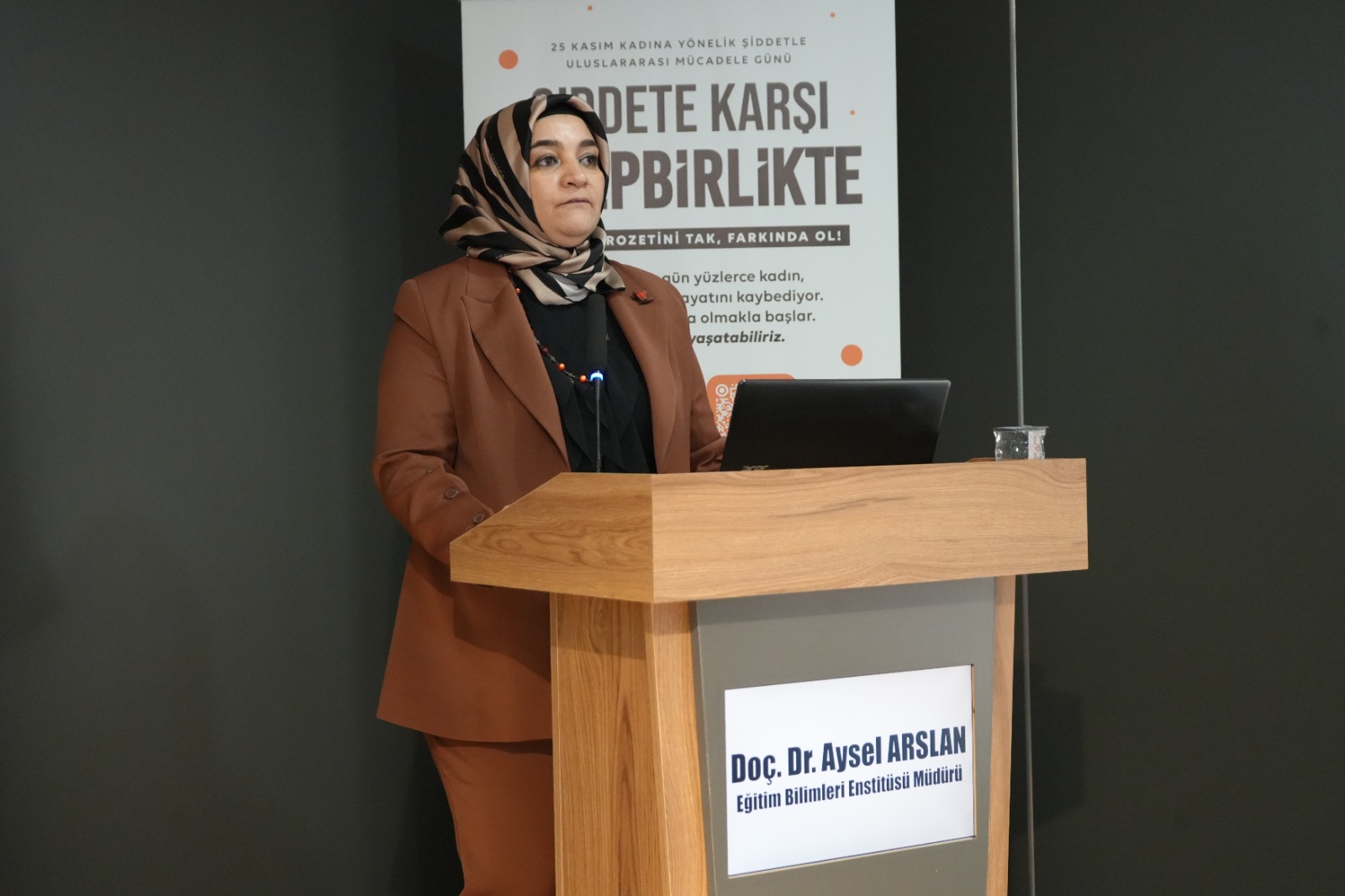 Saygı duruşu ve İstiklal Marşı’nın okunmasının ardından gerçekleştirilen açılış konuşmasında, kadına yönelik şiddetin önlenmesinde eğitim kurumlarının öncü rolüne dikkat çekildi. Konuşmada, toplumsal bilincin artırılması, gençlerin duyarlılığının geliştirilmesi ve kurumlar arası iş birliğinin güçlendirilmesinin önem taşıdığı ifade edildi.