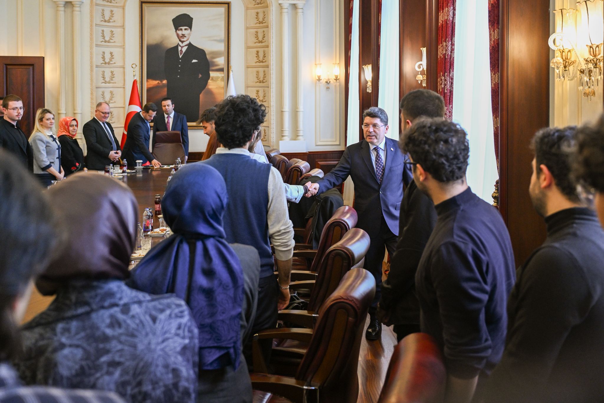 Sivas Cumhuriyet Üniversitesi Hukuk Fakültesi öğrencileri, Adalet Bakanı Sayın Yılmaz Tunç ile bir araya gelerek hukuk alanındaki güncel gelişmeler ve mesleki hedefler üzerine kapsamlı bir görüşme gerçekleştirdi.