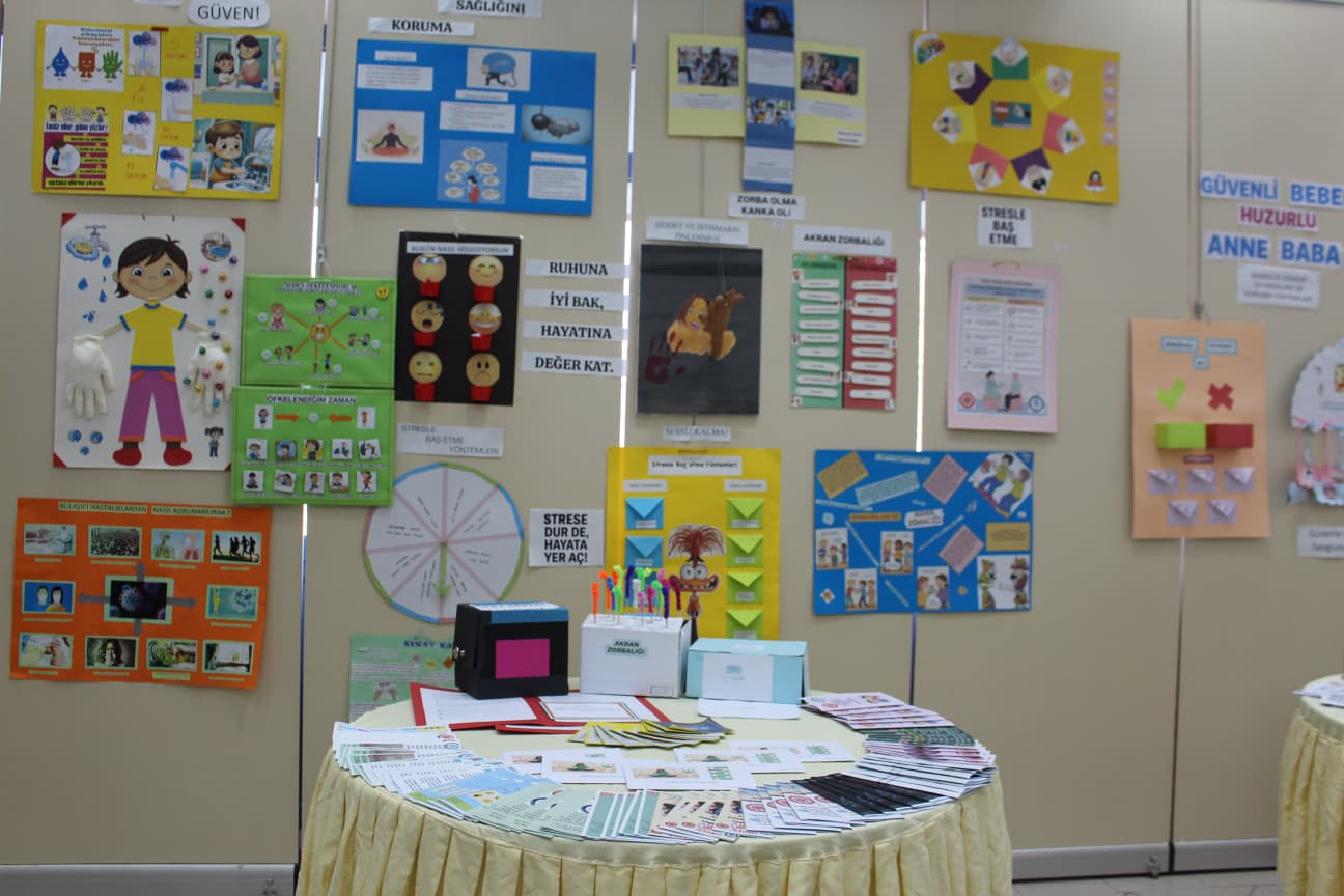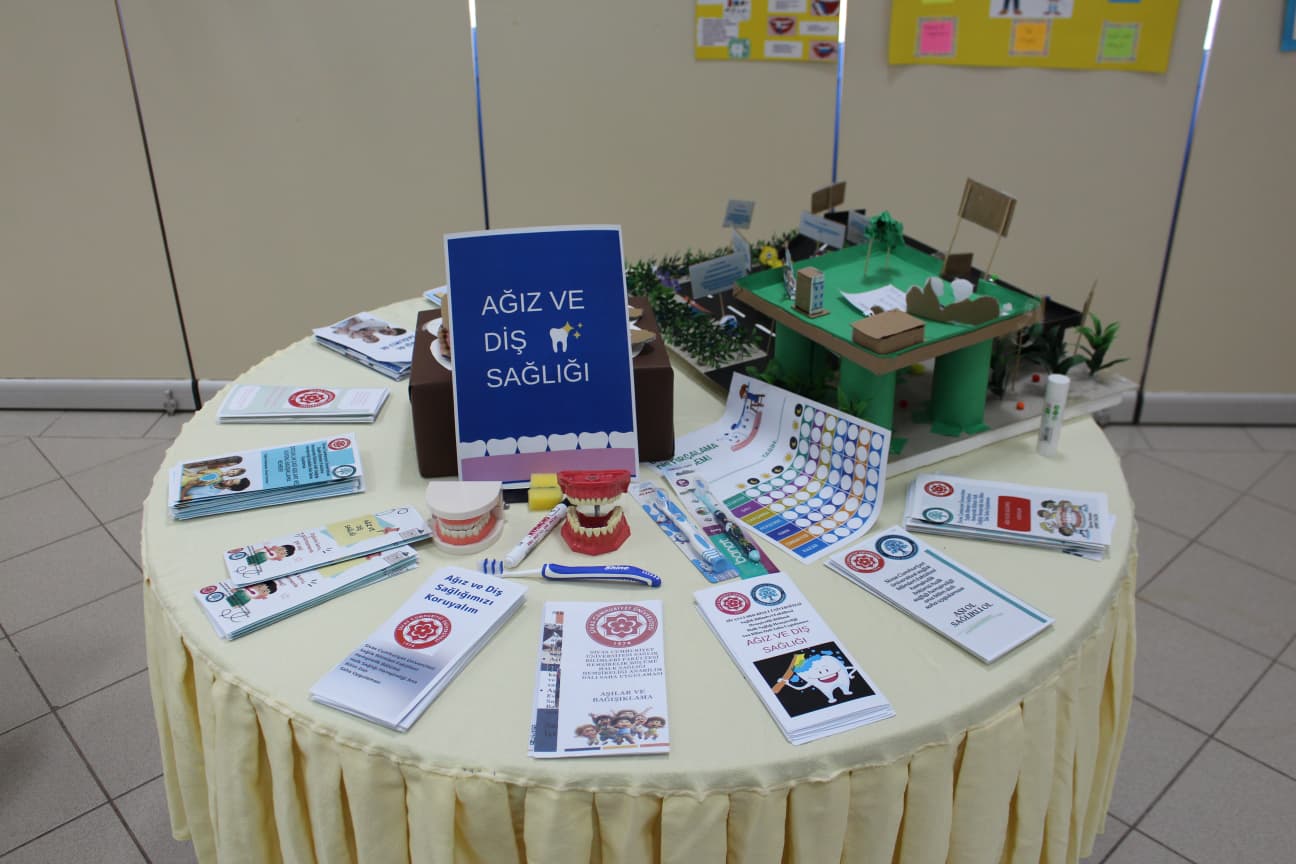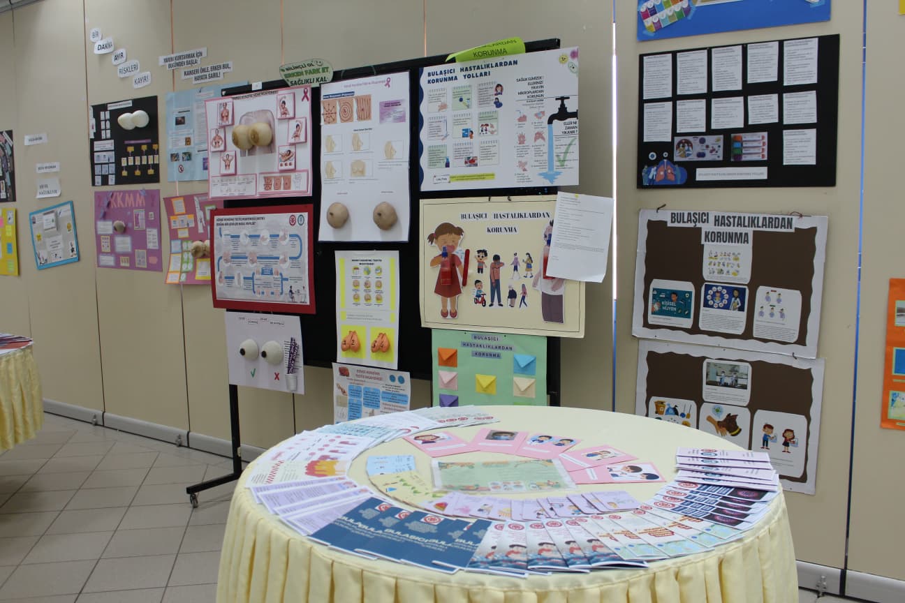 El hijyeni, üreme sağlığı, temel sağlık davranışları ve çocuklara yönelik bilgilendirici çalışmalar, renkli ve dikkat çekici tasarımlarla sunuldu.