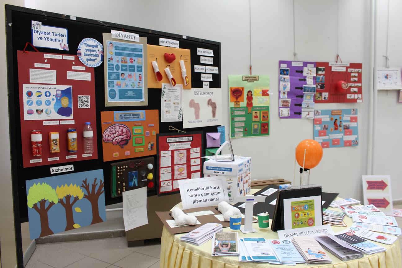 Sergide, hemşirelik öğrencilerinin sağlık okuryazarlığını geliştirmek amacıyla hazırladığı el yapımı ve interaktif eğitim materyalleri yer aldı.