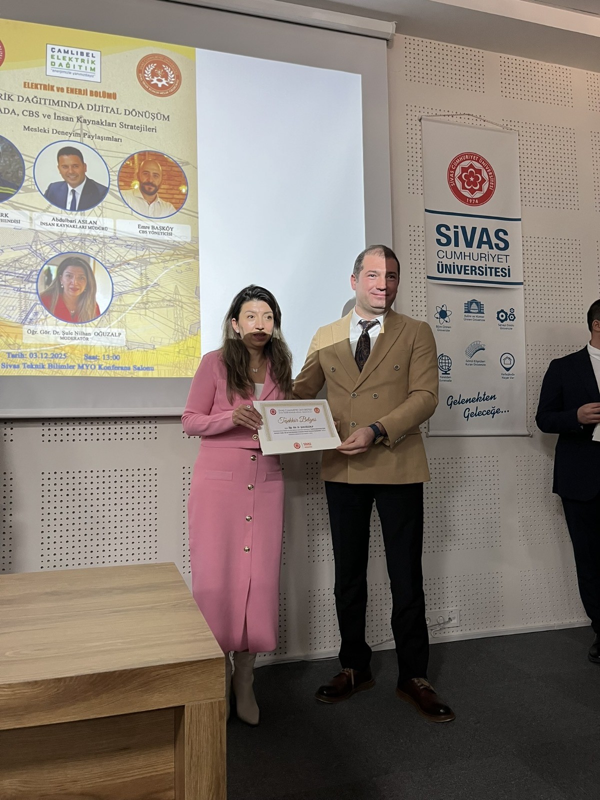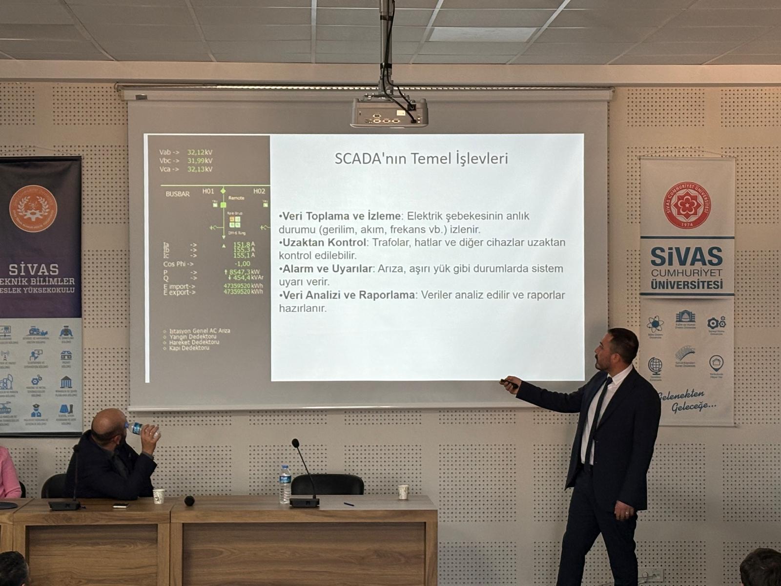 Sivas Cumhuriyet Üniversitesi Sivas Teknik Bilimler Meslek Yüksekokulu Elektrik ve Enerji Bölümü tarafından “Elektrik Dağıtımında Dijital Dönüşüm: SCADA, CBS ve İnsan Kaynakları Stratejileri” konulu konferans düzenlendi. Etkinliğin moderatörlüğünü Elektrik ve Enerji Bölümü öğretim elemanlarından Öğr. Gör. Dr. Şule Nilhan Oğuzalp üstlendi.