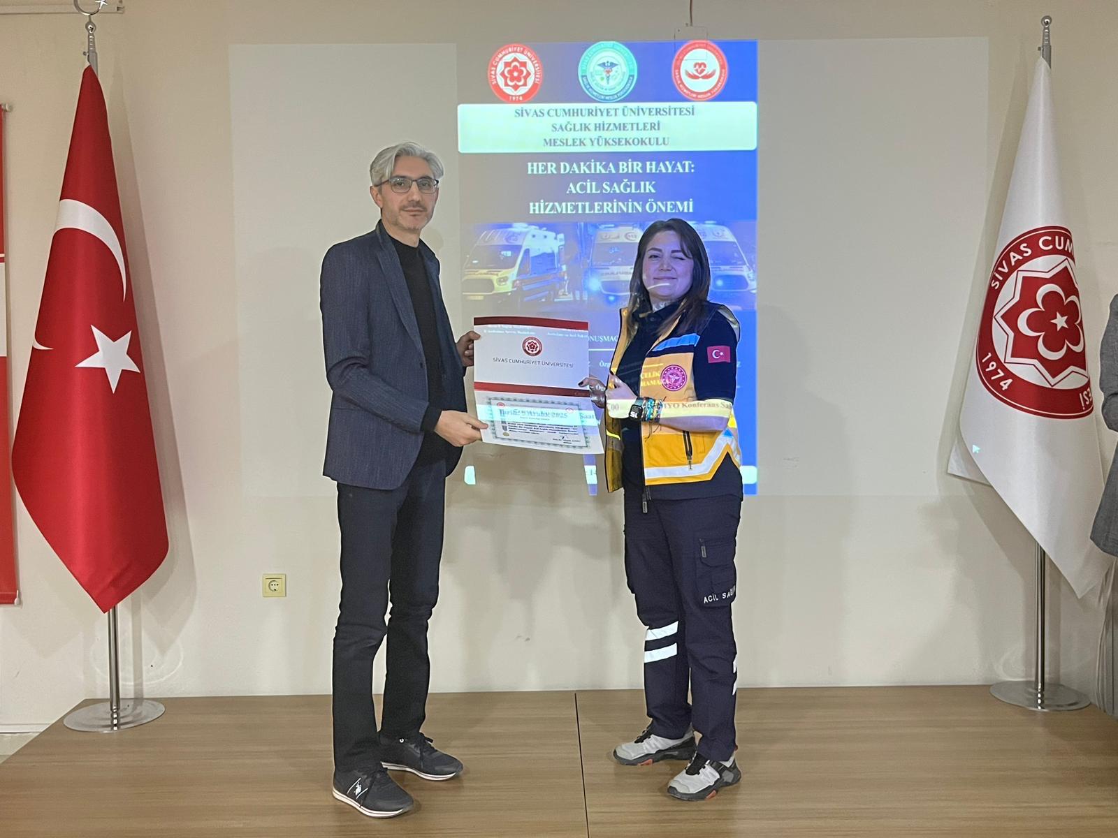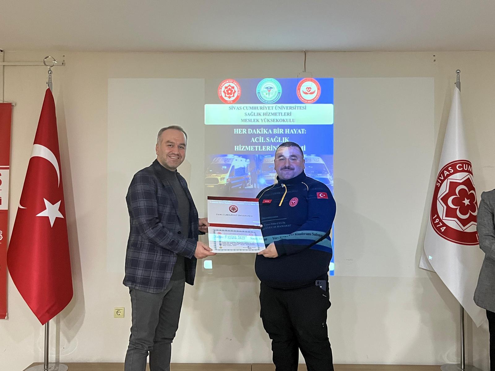Konuşmacılar, mesleğin teknik donanım kadar özgüven, hızlı karar verebilme ve yüksek sorumluluk bilinci gerektirdiğini ifade ederek ekip çalışmasının sahadaki başarının temel unsurlarından biri olduğunu örneklerle anlattı. Ayrıca acil sağlık istasyonlarının günlük işleyişi, nöbet süreçleri ve operasyonel akışa dair saha deneyimleri paylaşıldı. Etkinlik sonunda katılımcılara teşekkür belgesi takdim edildi.
