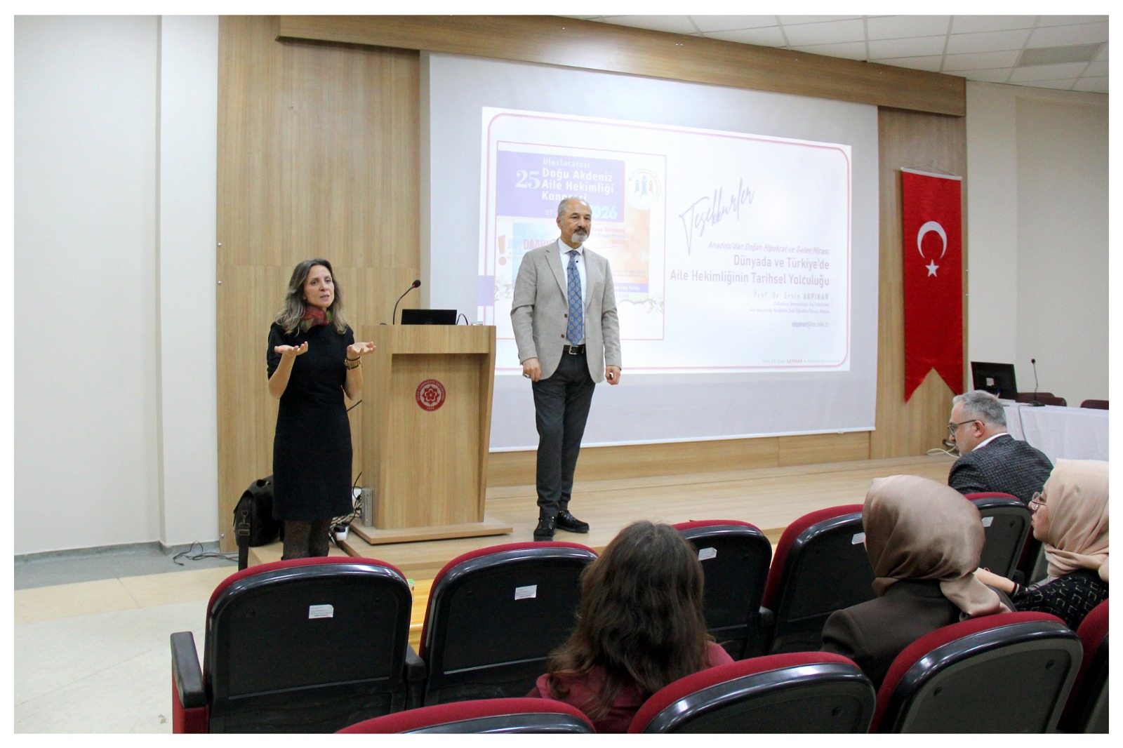 Çukurova Üniversitesi Tıp Fakültesi Aile Hekimliği Anabilim Dalı Öğretim Üyesi Prof. Dr. Ersin Akpınar’ın konuşmacı olarak katıldığı program, Behsan Önal Konferans Salonu’nda gerçekleştirildi. Prof. Dr. Akpınar sunumunda, aile hekimliğinin dünya genelindeki gelişim sürecini, Anadolu tıbbının tarihsel köklerini ve Hipokrat ile Galen’den günümüze taşınan bilimsel mirası ele aldı.