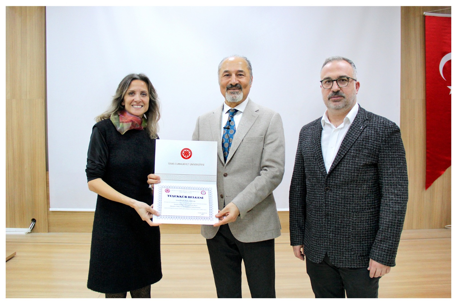 Program sonunda Prof. Dr. Ersin Akpınar’a teşekkür belgesi takdim edildi. Toplu fotoğraf çekiminin ardından etkinlik sona erdi.