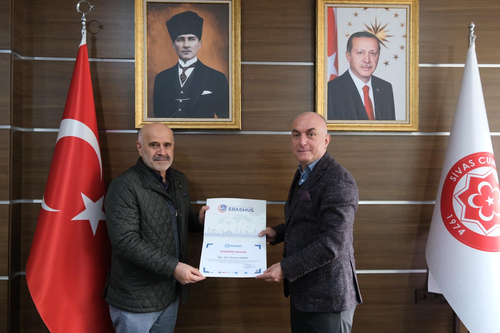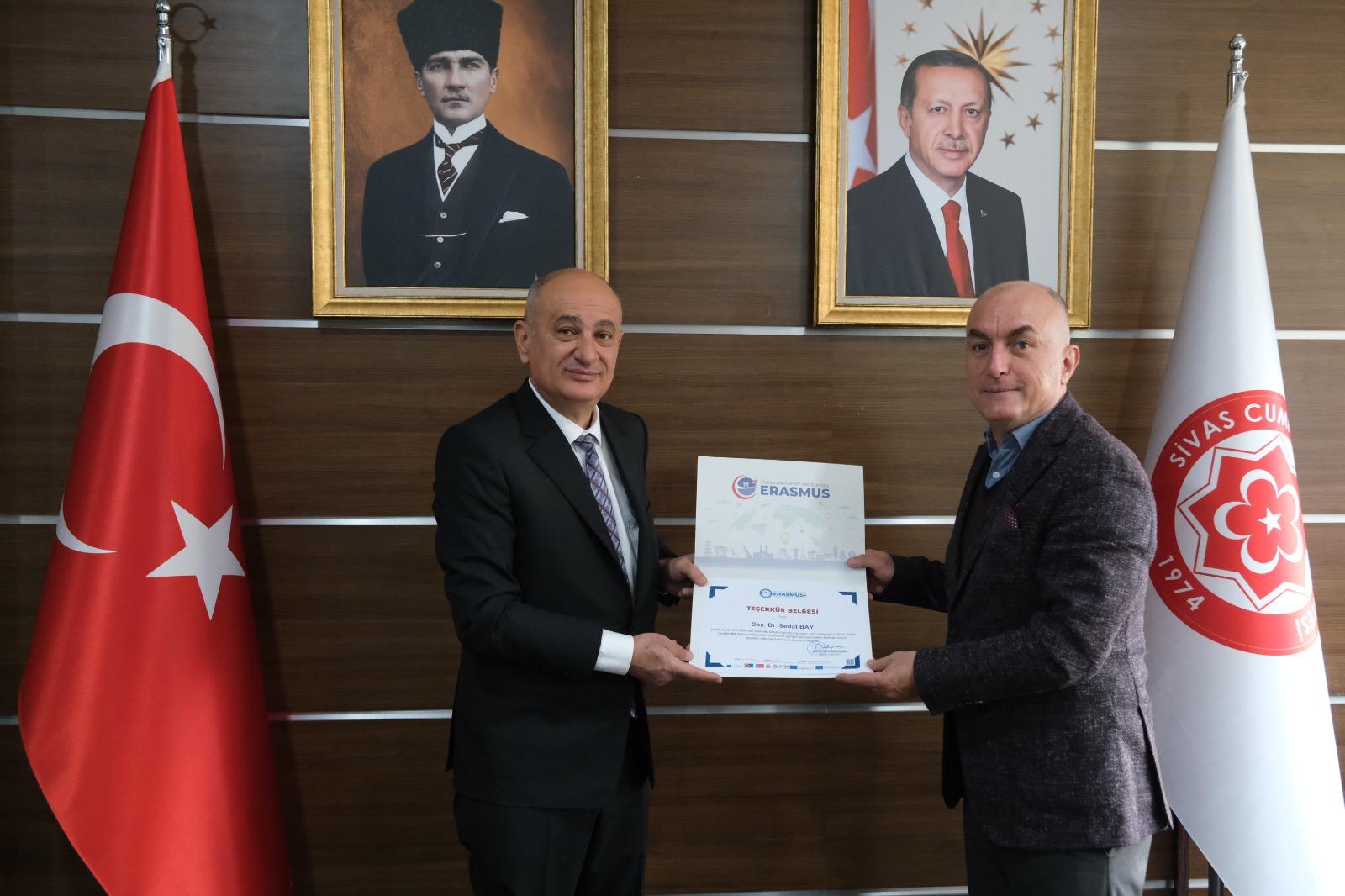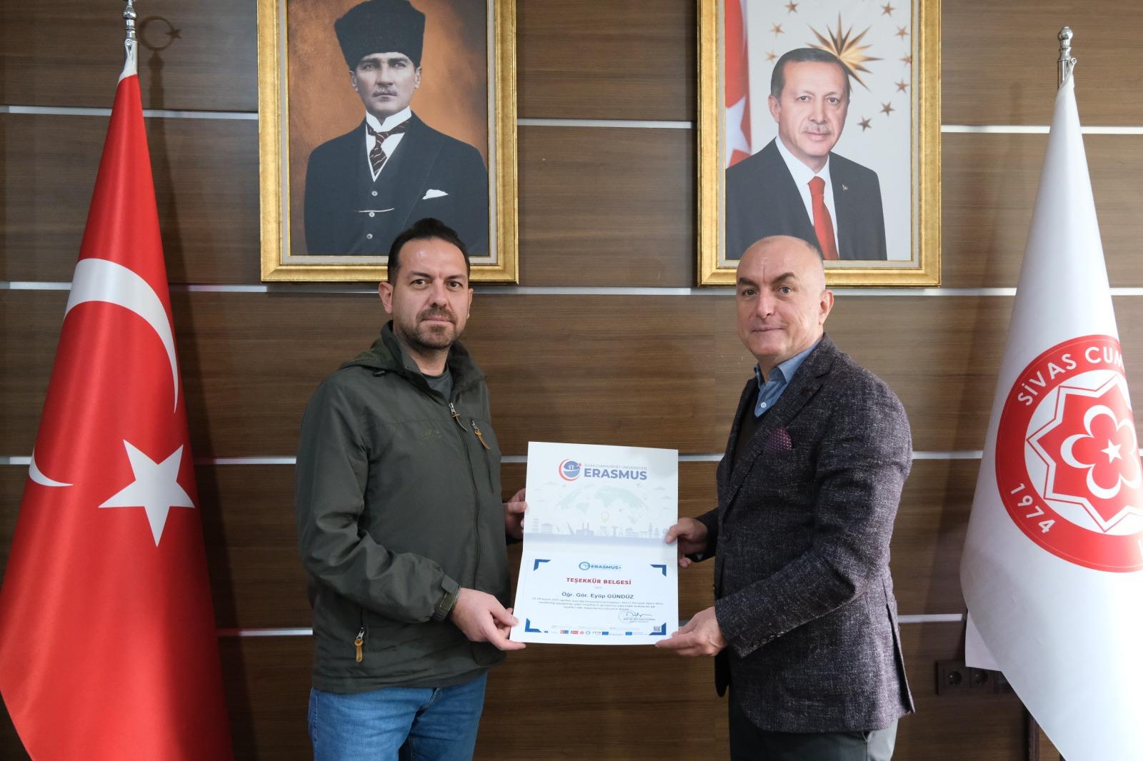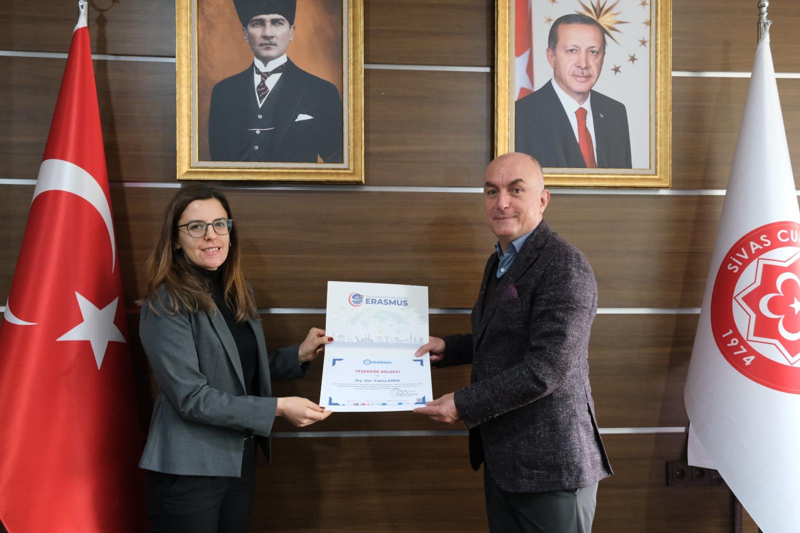 Programın sonunda, hareketliliğin gerçekleştirilmesine katkı sunan Edebiyat Fakültesi İngiliz Dili ve Edebiyatı Bölümü öğretim elemanlarına teşekkür belgeleri, Üniversitemiz Rektör Yardımcısı ve Uluslararası İlişkiler Ofisi Başkanı Prof. Dr. Süleyman Değirmen tarafından takdim edildi.