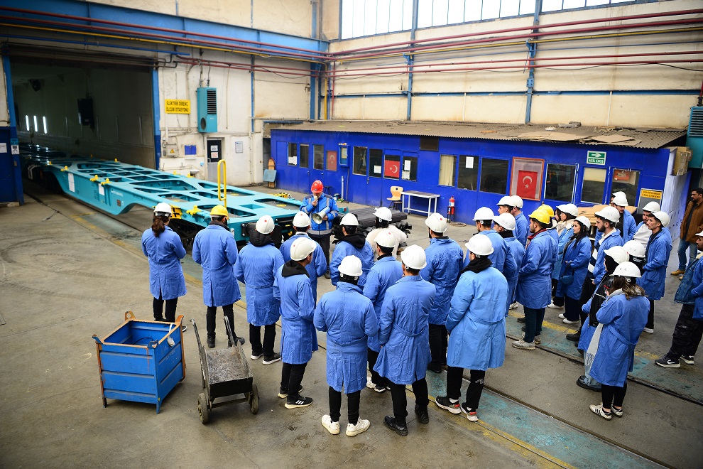 Bölüm Başkanı Dr. Öğr. Üyesi Esin Tuğba Şimşek Çelik’in koordinasyonunda gerçekleştirilen TÜRASAŞ Sivas Bölge Müdürlüğü teknik gezisinde ise 2. sınıf öğrencilerine Bölüm Öğr. Gör. Mustafa Yılmaz eşlik etti. Öğrenciler; Vagon Üretim, Vagon Onarım, Boji ve Metal İşleri fabrikalarını gezerek üretim süreçlerini yakından inceleme fırsatı buldu. Ayrıca Türk mühendisler tarafından yerli imkânlarla üretilen tarihi Bozkurt Lokomotifi de ziyaret edilerek fotoğraf çekimiyle program tamamlandı.