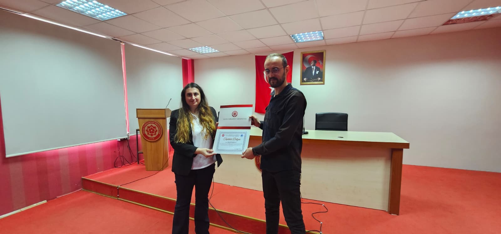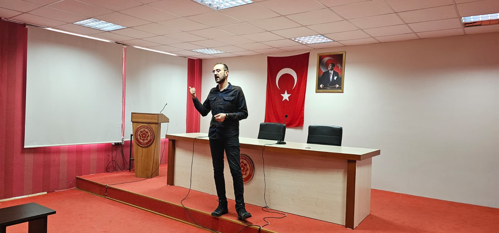 Bölüm Başkanı Dr. Öğr. Üyesi Esin Tuğba Şimşek Çelik tarafından organize edilen Mezun Öğrenci Söyleşisi’nde, bölümün ilk mezunlarından ve Demirdağ Gar Şefliği Hareket Memuru olan Mevlüd Sarıoğlu öğrencilerle buluştu. Sarıoğlu, iş hayatına geçiş sürecini, mesleki tecrübelerini ve sektöre dair önerilerini öğrencilerle paylaşarak soruları yanıtladı. Program, kendisine teşekkür belgesi takdimiyle sona erdi.