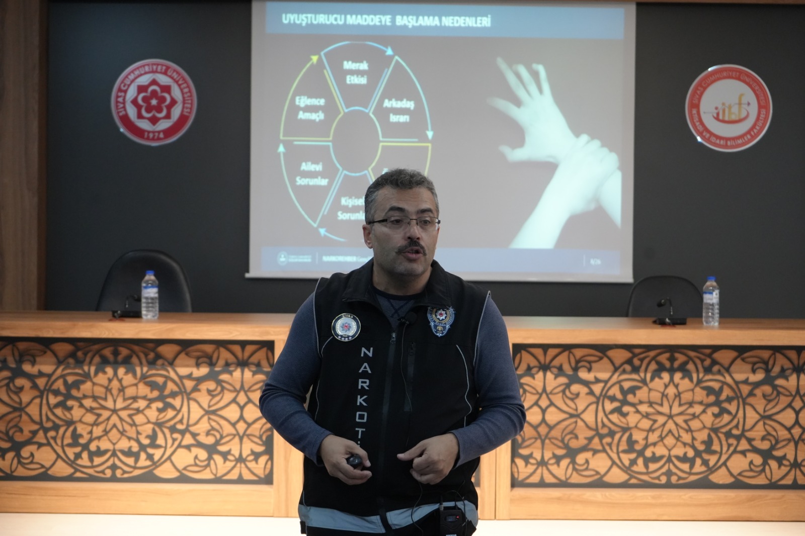 Sivas Cumhuriyet Üniversitesi İİBF Fakültesi, gençleri uyuşturucu ve bağımlılık risklerine karşı bilinçlendirmeye yönelik “Narko Gençlik” başlıklı bir etkinliğe ev sahipliği yaptı. Program, üniversite öğrencilerinde farkındalık oluşturmayı ve koruyucu-önleyici yaklaşımlar konusunda bilgilendirme sağlamayı amaçlıyor.