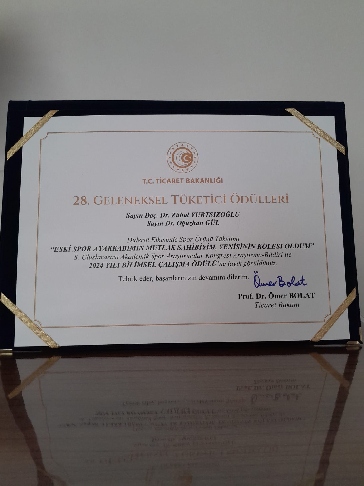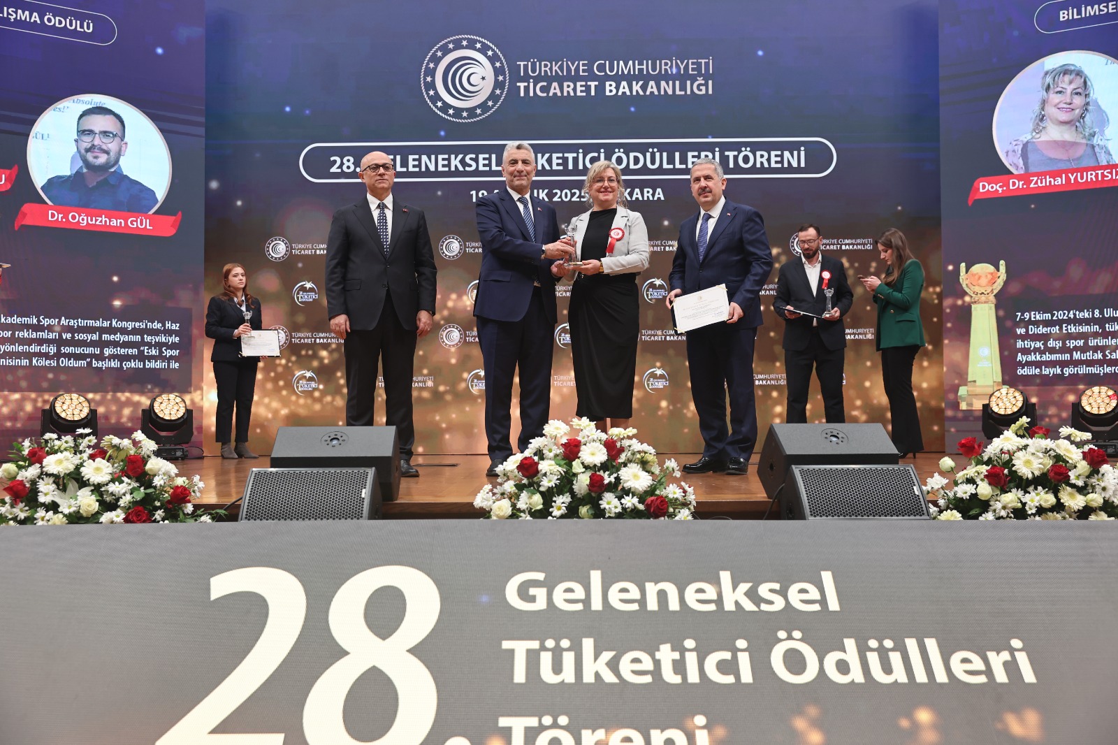 28. Geleneksel Tüketici Ödülleri Töreni, 19 Aralık 2025 tarihinde Ticaret Bakanlığı tarafından düzenlenmiş; ödül, akademisyenlerimize Ticaret Bakanı Sayın Ömer Bolat tarafından takdim edilmiştir. Törene ayrıca Spor Bilimleri Fakültesi Dekanı Prof. Dr. Mehmet Gül de katılım sağlamıştır.