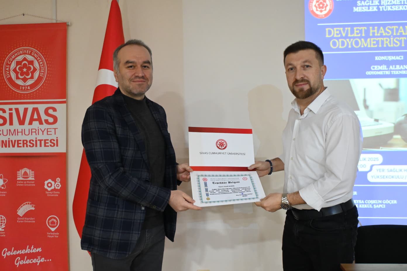 Etkinlikte konuşmacı olarak yer alan Odyometri Teknikeri Cemil Alban, devlet hastanelerinde odyometristlik mesleğinin uygulama alanları ile mesleki deneyimlerini öğrencilerle paylaştı. Yoğun katılımla gerçekleşen programda, öğrencilerin mesleki farkındalıklarını artırmaya yönelik bilgilendirici sunumlar gerçekleştirildi.