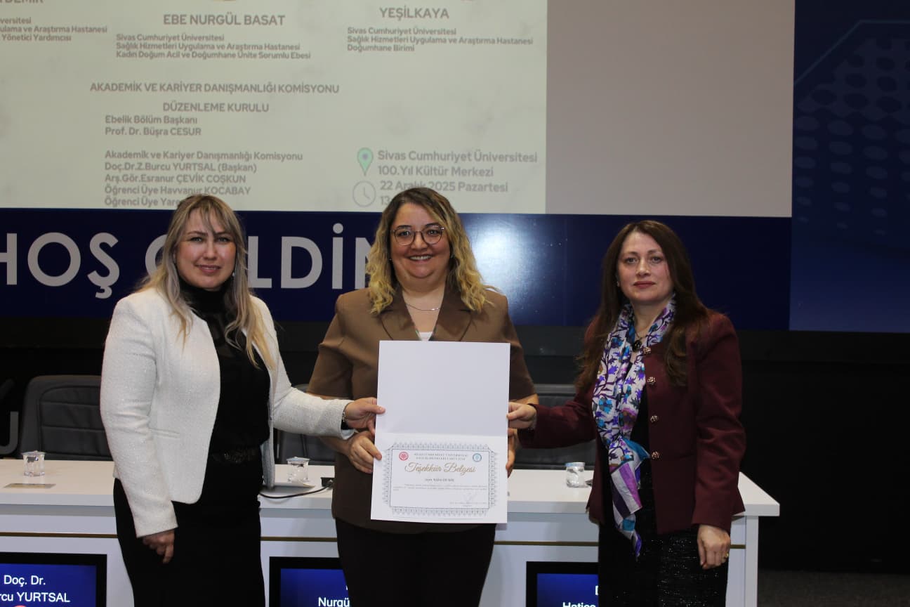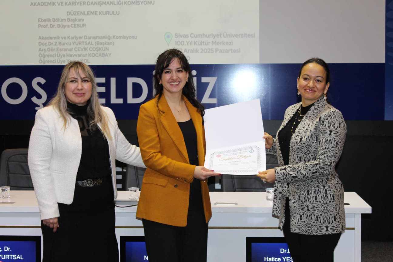 Sivas Cumhuriyet Üniversitesi Sağlık Bilimleri Fakültesi Ebelik Bölümü, öğrencilerin akademik ve mesleki gelişimlerini desteklemek amacıyla bir dizi etkinlik gerçekleştirdi. Akademik ve Kariyer Danışmanlığı Komisyonu tarafından düzenlenen “Ebelik Akademik Söyleşileri III” kapsamında, alanında deneyimli konuşmacılar mesleki tecrübelerini öğrencilerle paylaşarak ebelik mesleğinin sahadaki uygulamalarına, kariyer olanaklarına ve profesyonel gelişime dair önemli bilgiler aktardı. Öğrenciler söyleşi boyunca merak ettikleri soruları yöneltme fırsatı bulurken, program sonunda konuşmacılara teşekkür belgeleri takdim edildi.