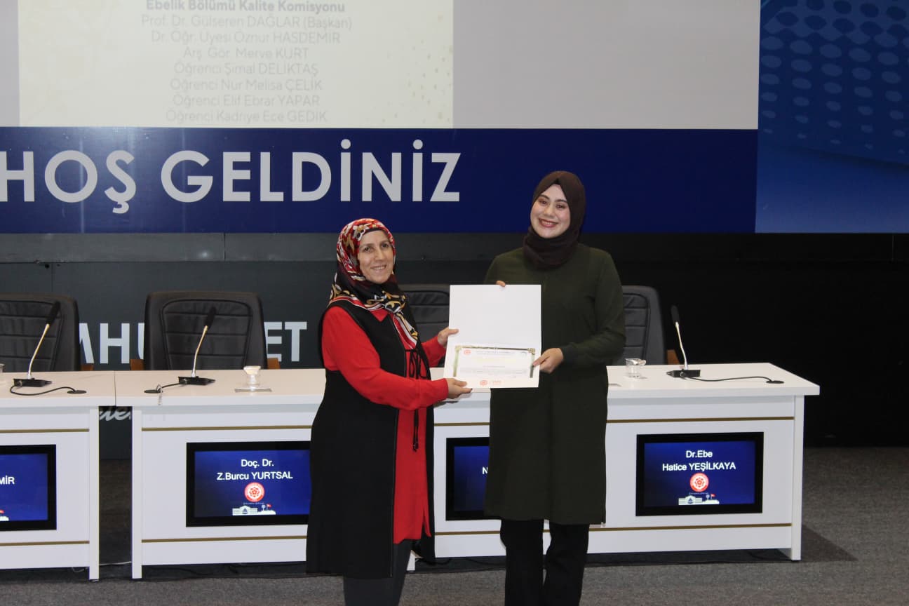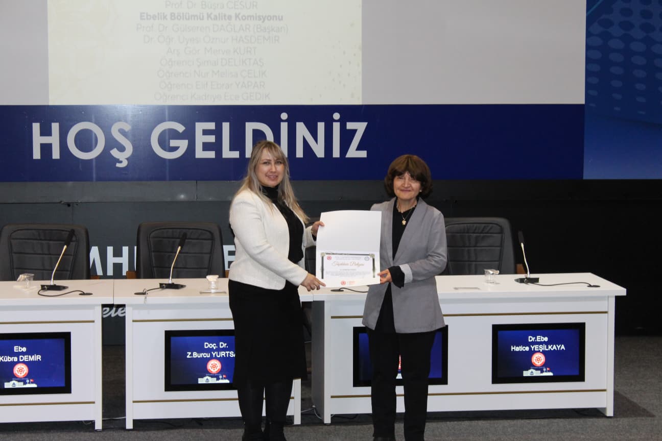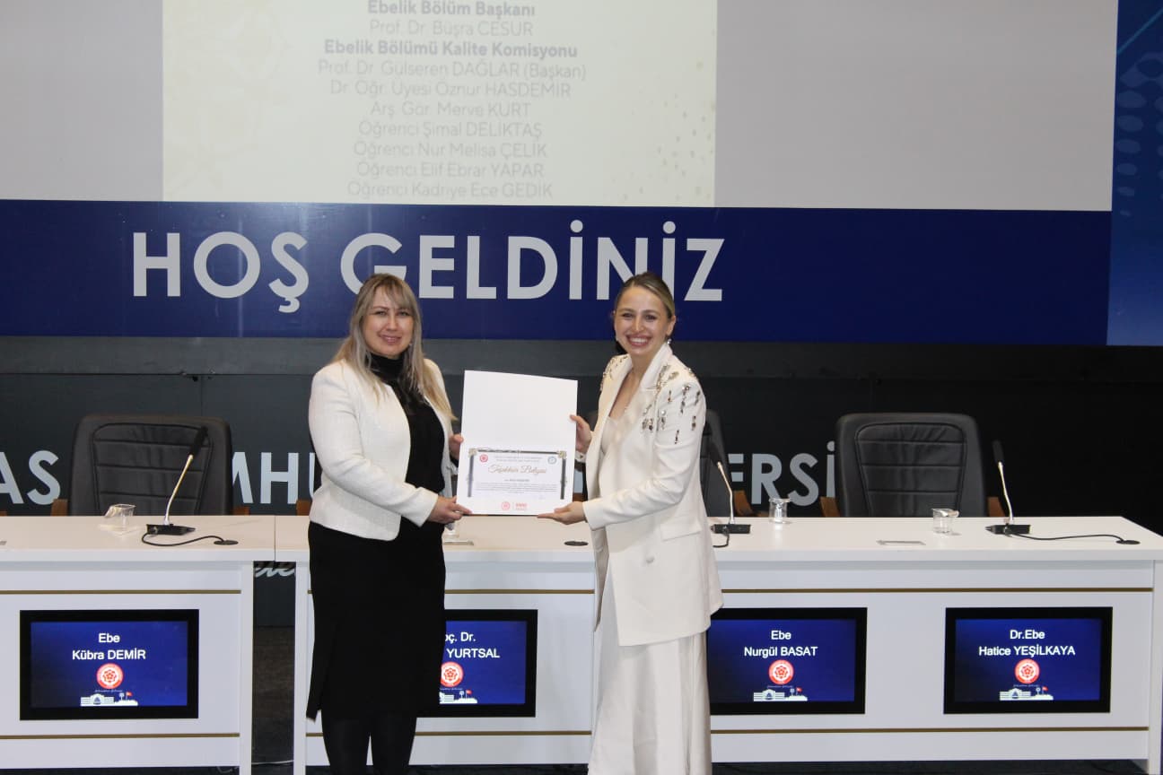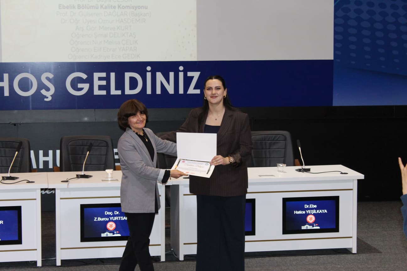 Gerçekleştirilen “Biz Birlikte Güçlüyüz: Teşekkür Belgesi Takdim Töreni”nde ise Ebelik Bölümü öğretim elemanlarına eğitim-öğretim ve akademik süreçlerdeki özverili katkılarından dolayı teşekkür belgeleri sunuldu. Bölüm Başkanı Prof. Dr. Büşra Cesur’a, bölümün akademik ve kurumsal gelişimine sağladığı katkılar nedeniyle Sağlık Bilimleri Fakültesi Dekanı Prof. Dr. Selma Sabancıoğulları tarafından teşekkür belgesi verildi. Ayrıca Ebelik Öğrenci Kulübü ve komisyonlarda aktif görev alan öğrencilere de belgeler takdim edilerek bölüm içi dayanışma ve aidiyet duygusu pekiştirildi.