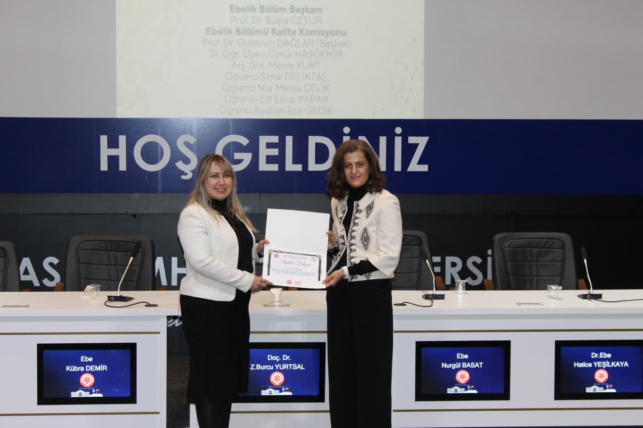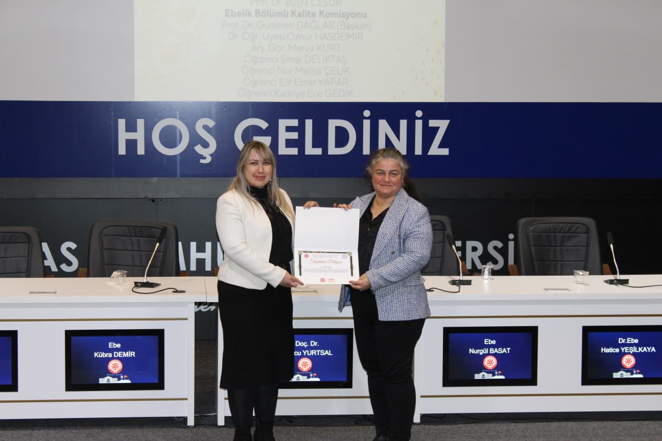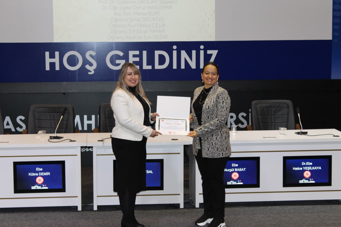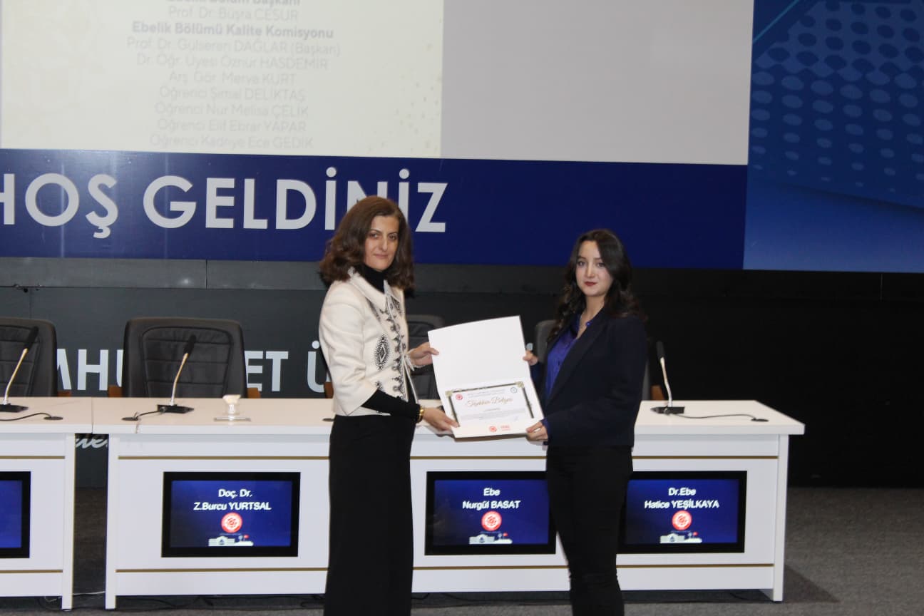 Gerçekleştirilen “Biz Birlikte Güçlüyüz: Teşekkür Belgesi Takdim Töreni”nde ise Ebelik Bölümü öğretim elemanlarına eğitim-öğretim ve akademik süreçlerdeki özverili katkılarından dolayı teşekkür belgeleri sunuldu. Bölüm Başkanı Prof. Dr. Büşra Cesur’a, bölümün akademik ve kurumsal gelişimine sağladığı katkılar nedeniyle Sağlık Bilimleri Fakültesi Dekanı Prof. Dr. Selma Sabancıoğulları tarafından teşekkür belgesi verildi. Ayrıca Ebelik Öğrenci Kulübü ve komisyonlarda aktif görev alan öğrencilere de belgeler takdim edilerek bölüm içi dayanışma ve aidiyet duygusu pekiştirildi.
