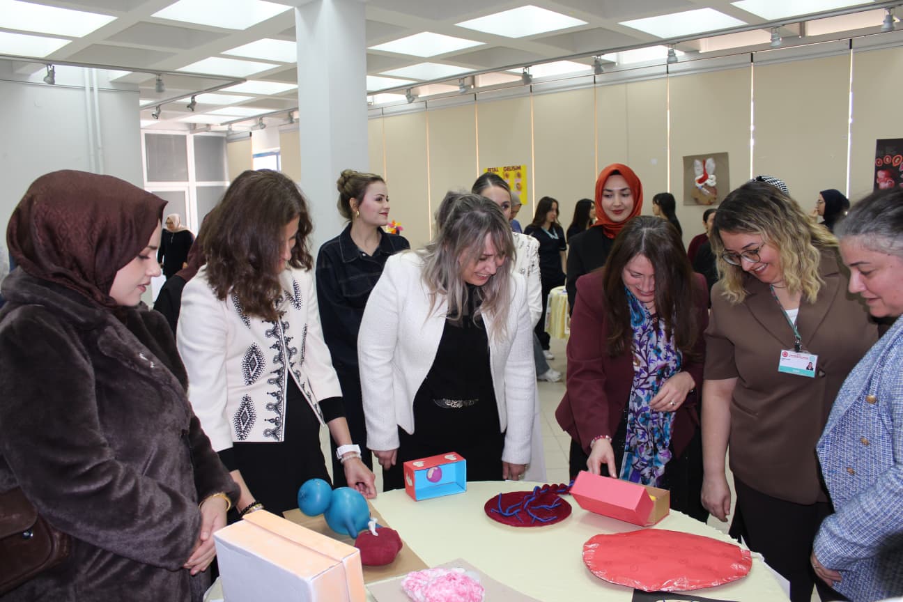 “Atıktan Sanata: Sağlık Öğretimi Materyal Sergisi”nde ise Ebelik Bölümü 2. sınıf öğrencileri geri dönüştürülebilir atık materyallerden hazırladıkları sağlık öğretimi materyallerini sergiledi. Katılımcıların yoğun ilgi gösterdiği sergi, öğrencilerin çevre duyarlılığını ve sürdürülebilirlik bilincini artırırken, yaratıcı ve düşük maliyetli öğretim materyalleri üretme becerilerini geliştirmeyi hedefledi. Etkinlik, aynı zamanda ekip çalışması, problem çözme ve yenilikçi düşünme becerilerinin güçlendirilmesine katkı sağladı.