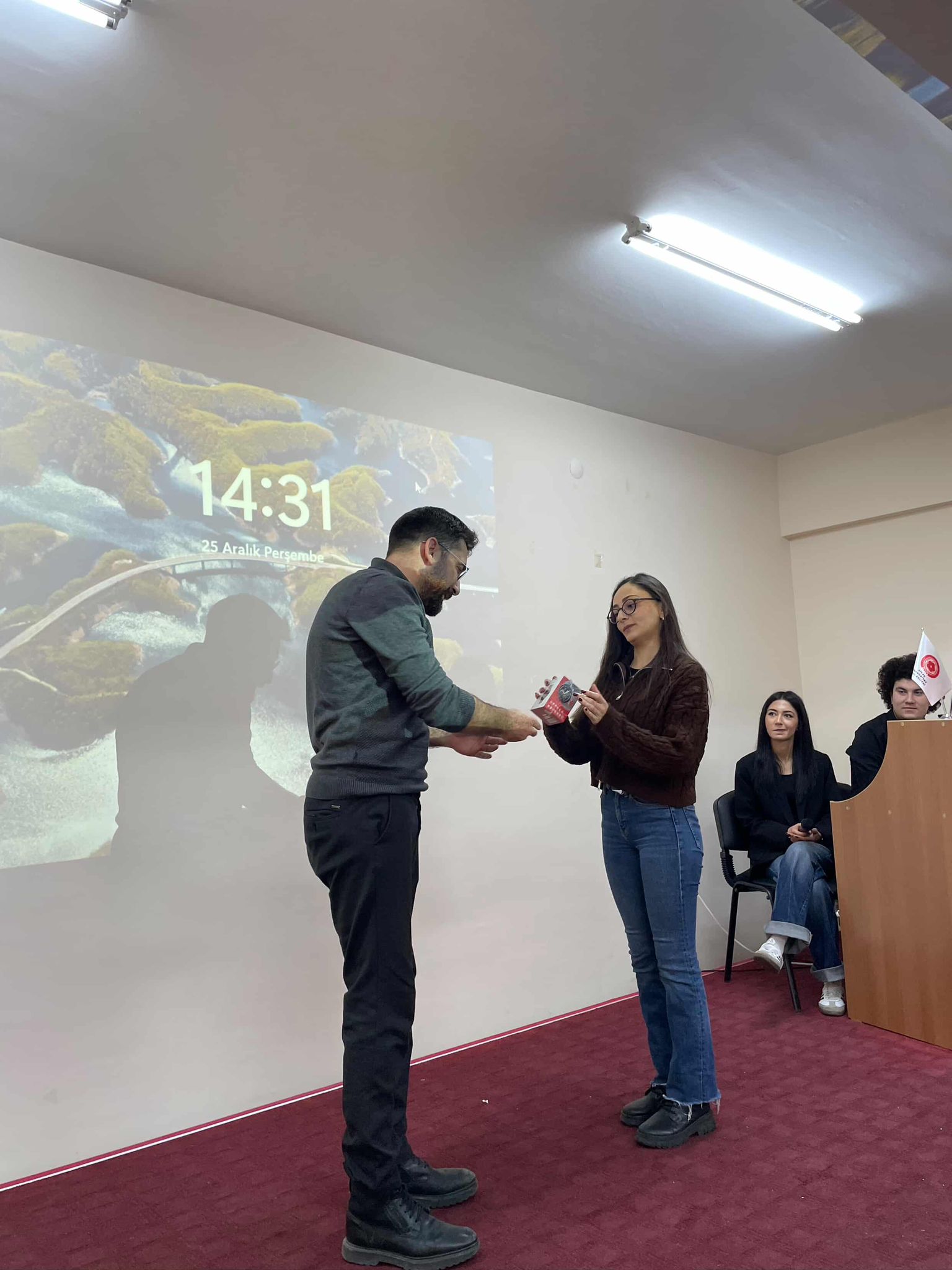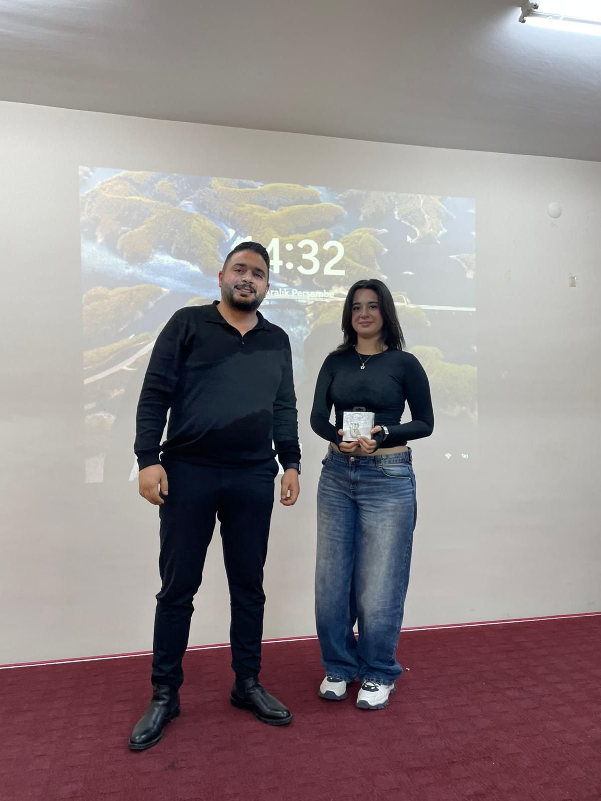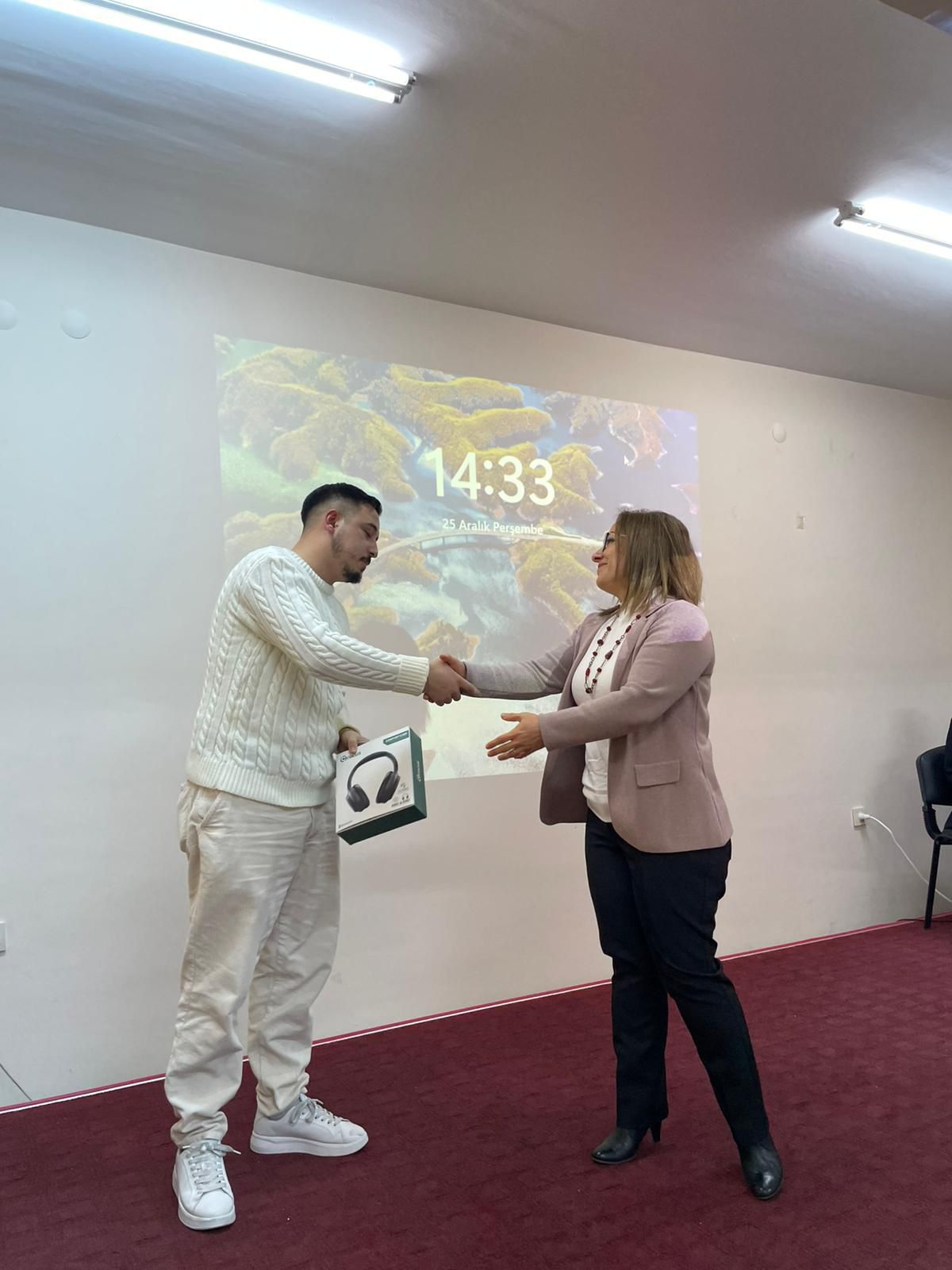 Karaoke yarışmasında dereceye giren öğrencilere öğretim elemanları tarafından ödülleri takdim edilirken, iş birliği kapsamında düzenlenen yarışmalarda başarılı olan 9 öğrenciye gezi ödülü verildi.