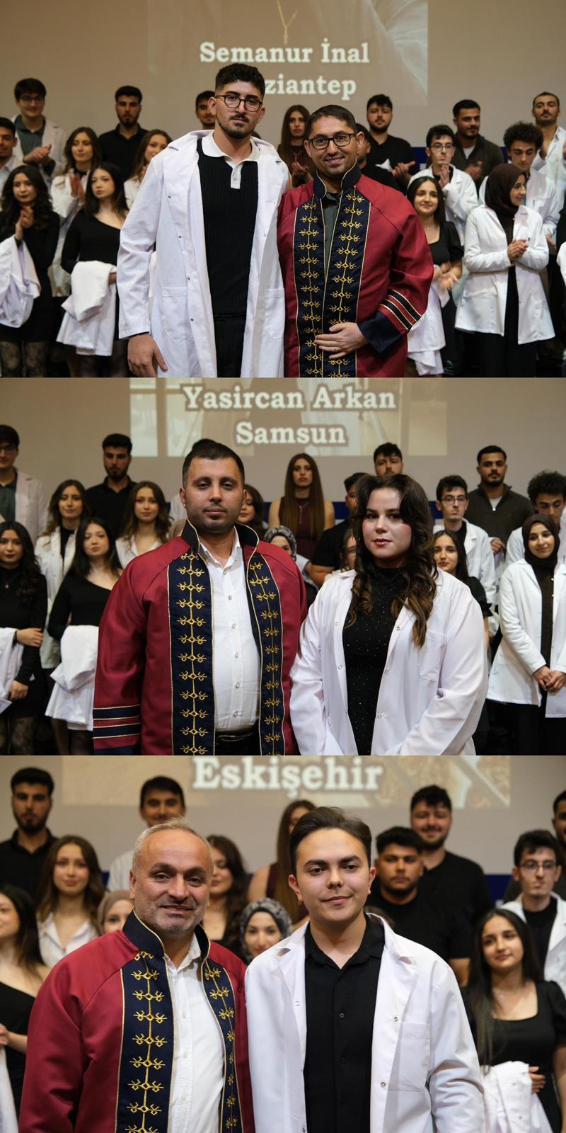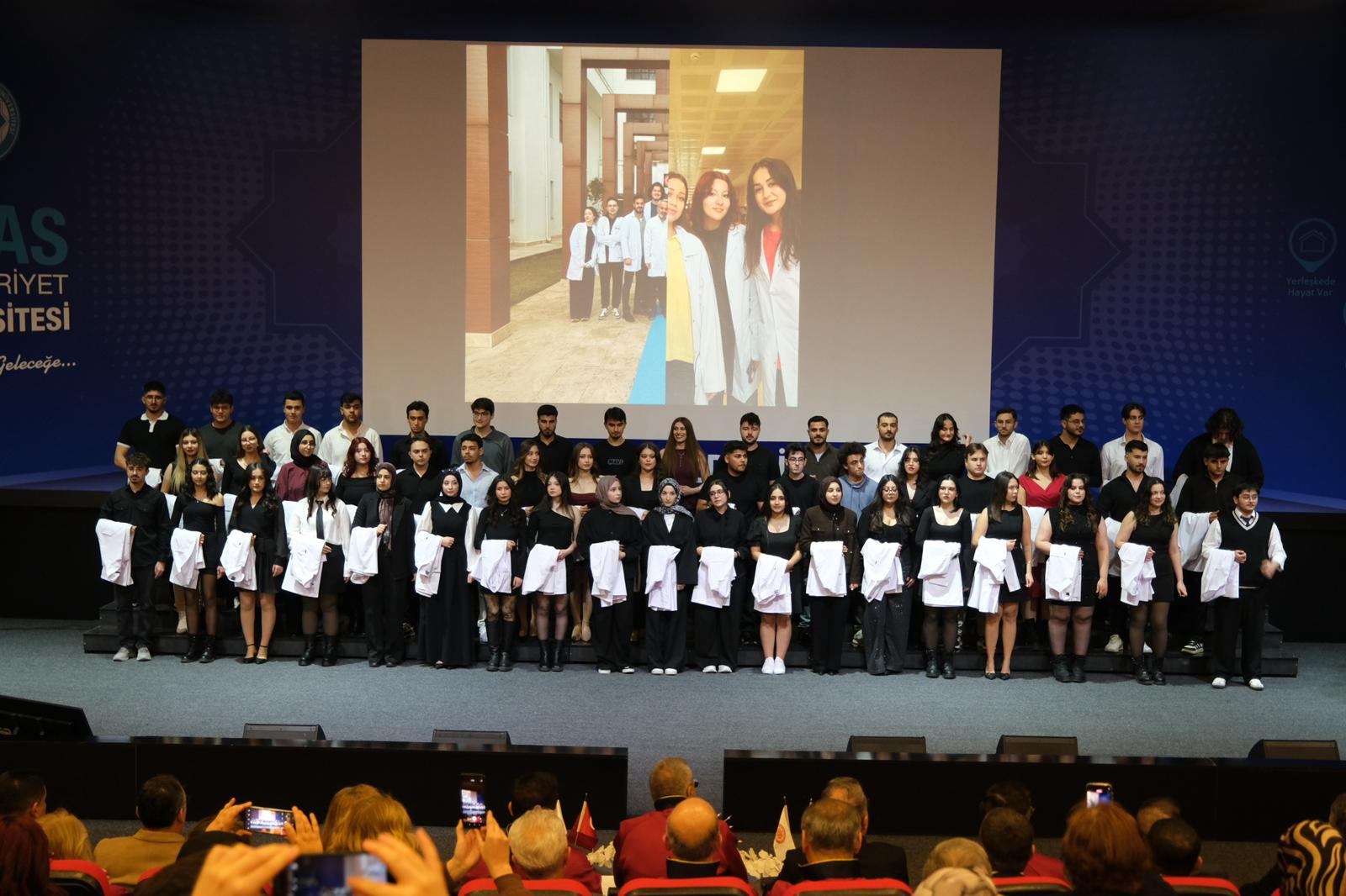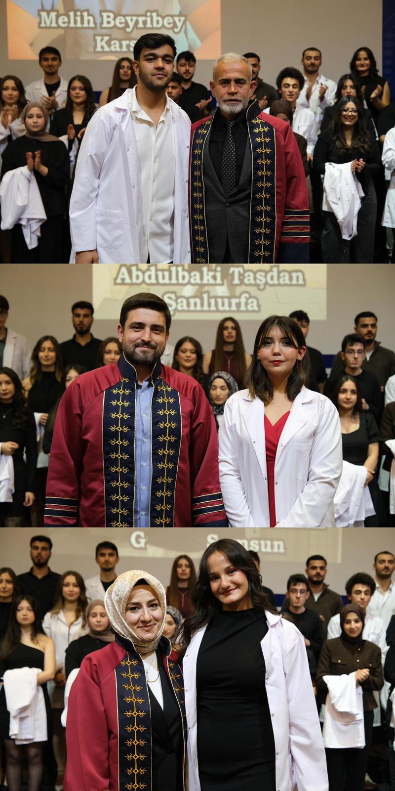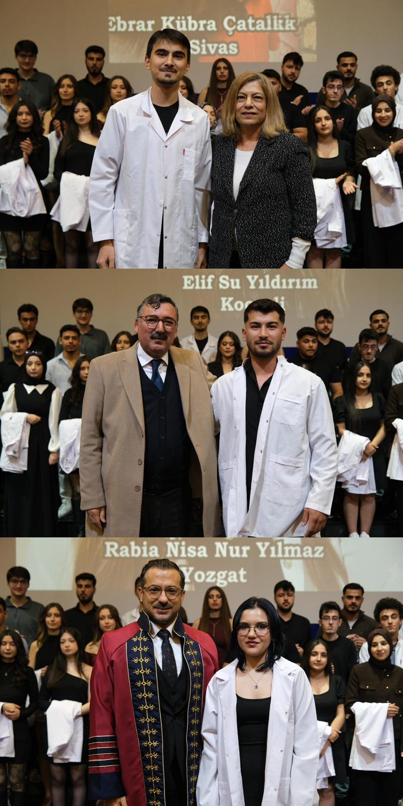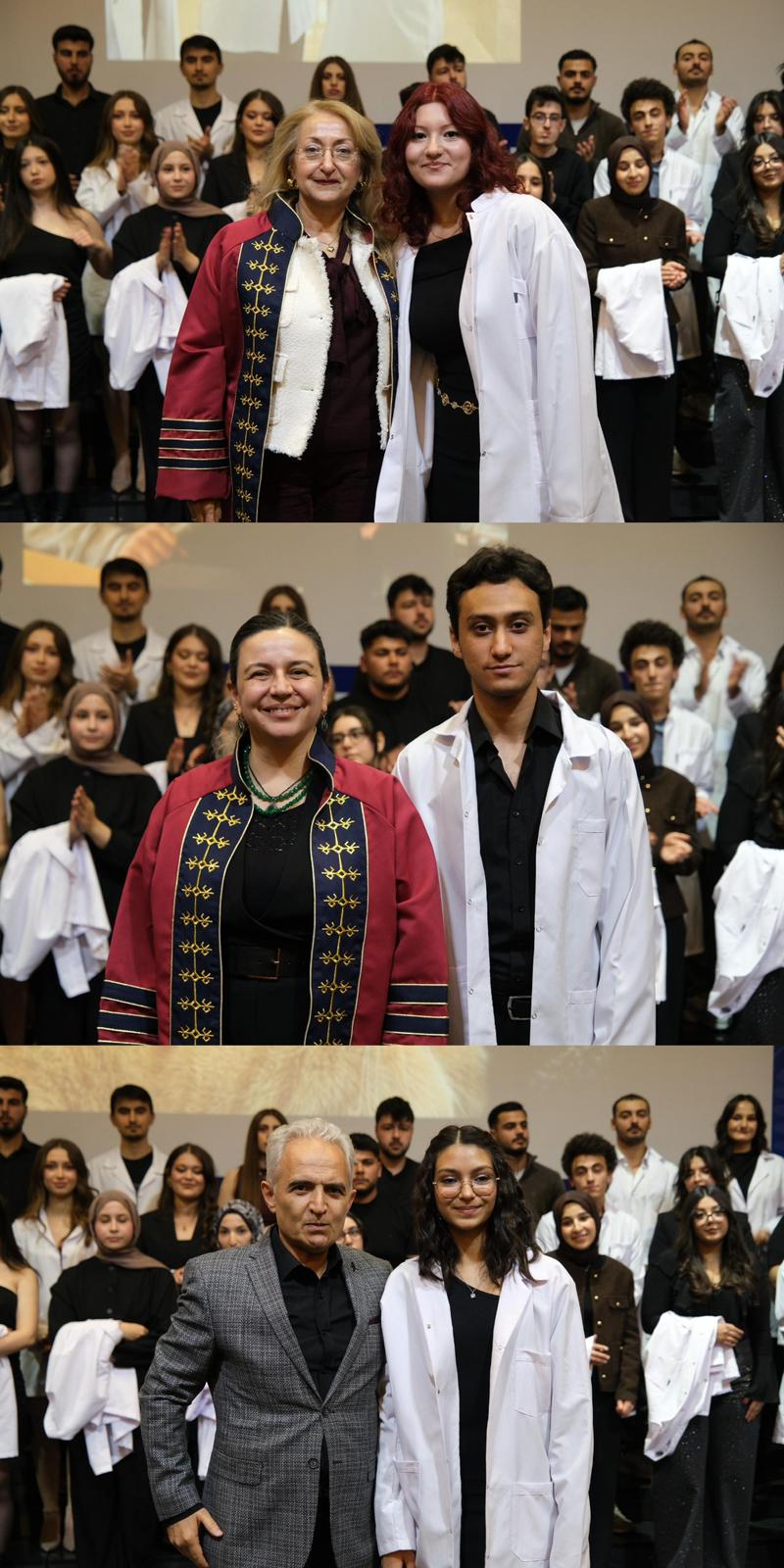 Saygı duruşu ve İstiklal Marşı ile başlayan programda, veteriner hekimlik mesleğinin etik değerleri ve sorumluluklarına vurgu yapıldı. Mesleki yolculuklarına ilk adımlarını atan öğrenciler, beyaz önlüklerini giyerek mesleğe resmen adım atmanın gururunu yaşadı.