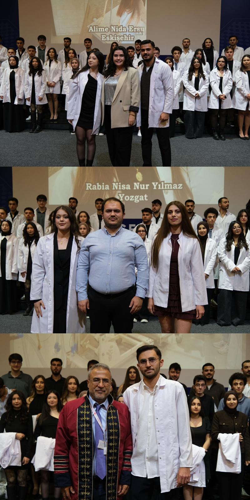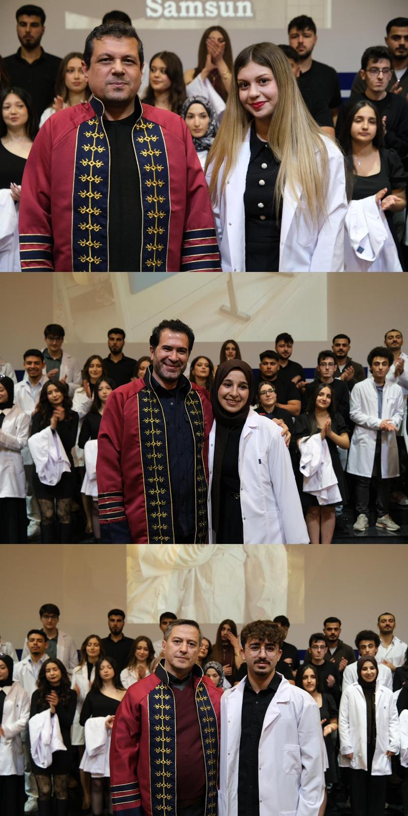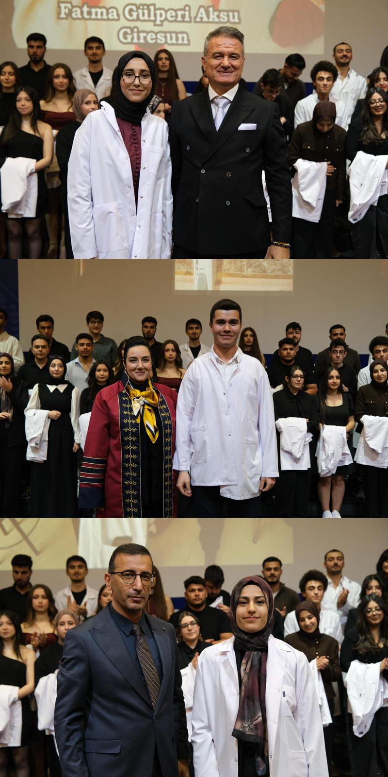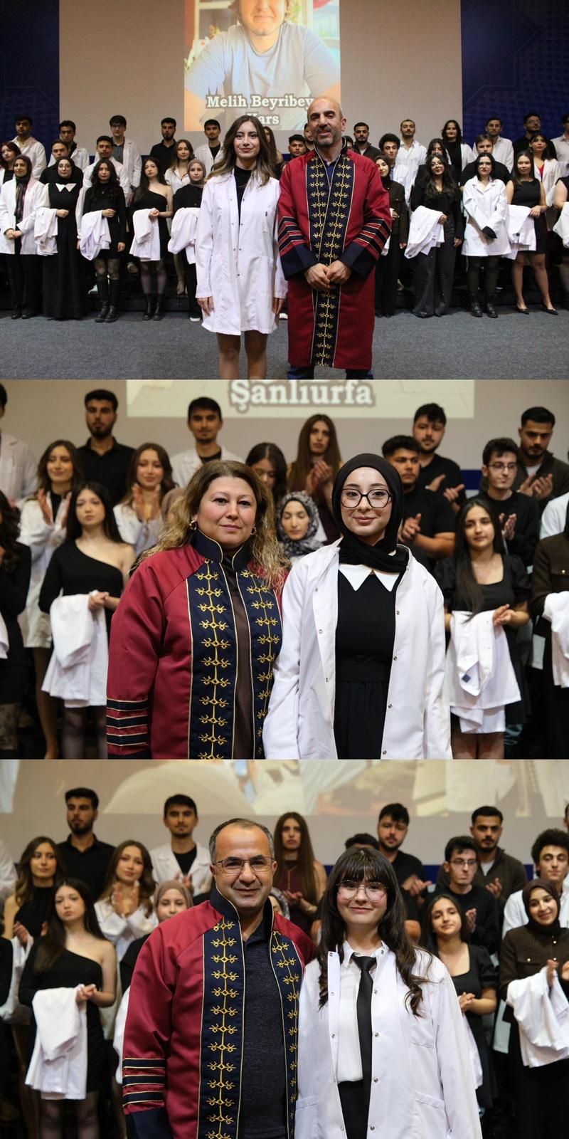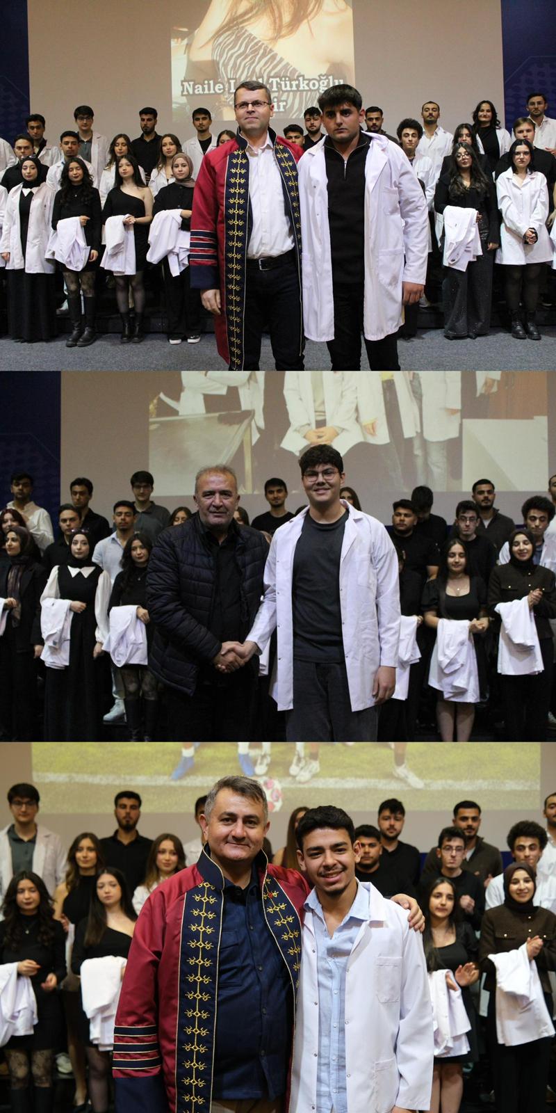 Saygı duruşu ve İstiklal Marşı ile başlayan programda, veteriner hekimlik mesleğinin etik değerleri ve sorumluluklarına vurgu yapıldı. Mesleki yolculuklarına ilk adımlarını atan öğrenciler, beyaz önlüklerini giyerek mesleğe resmen adım atmanın gururunu yaşadı.