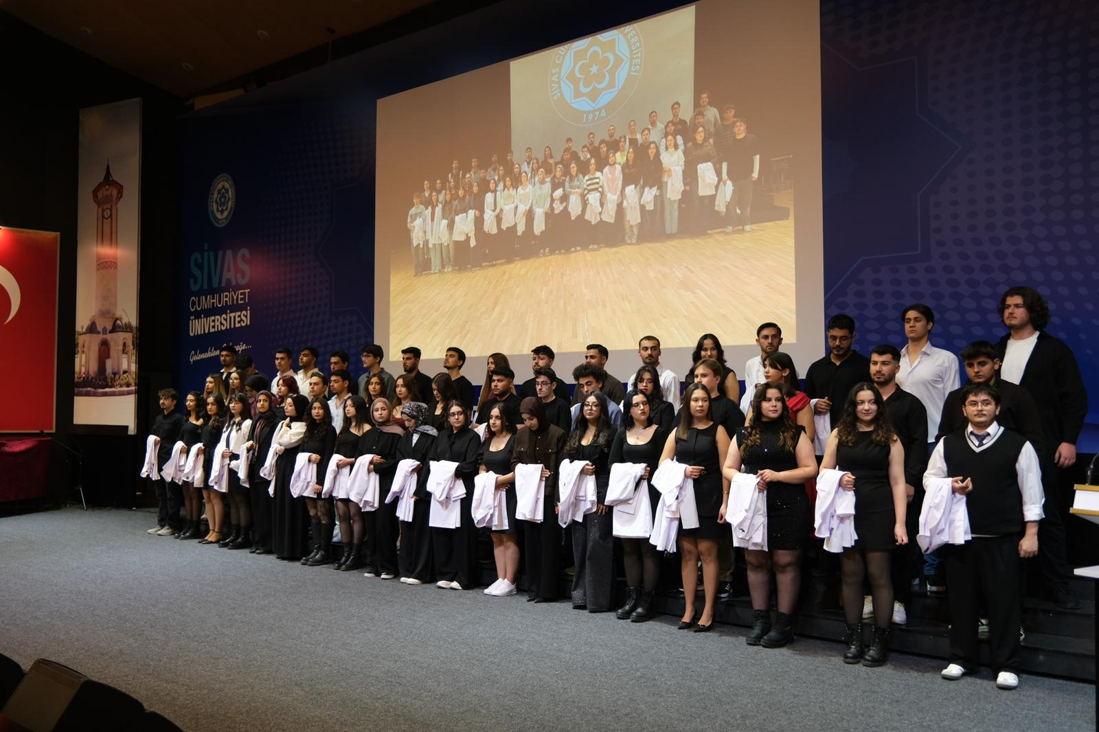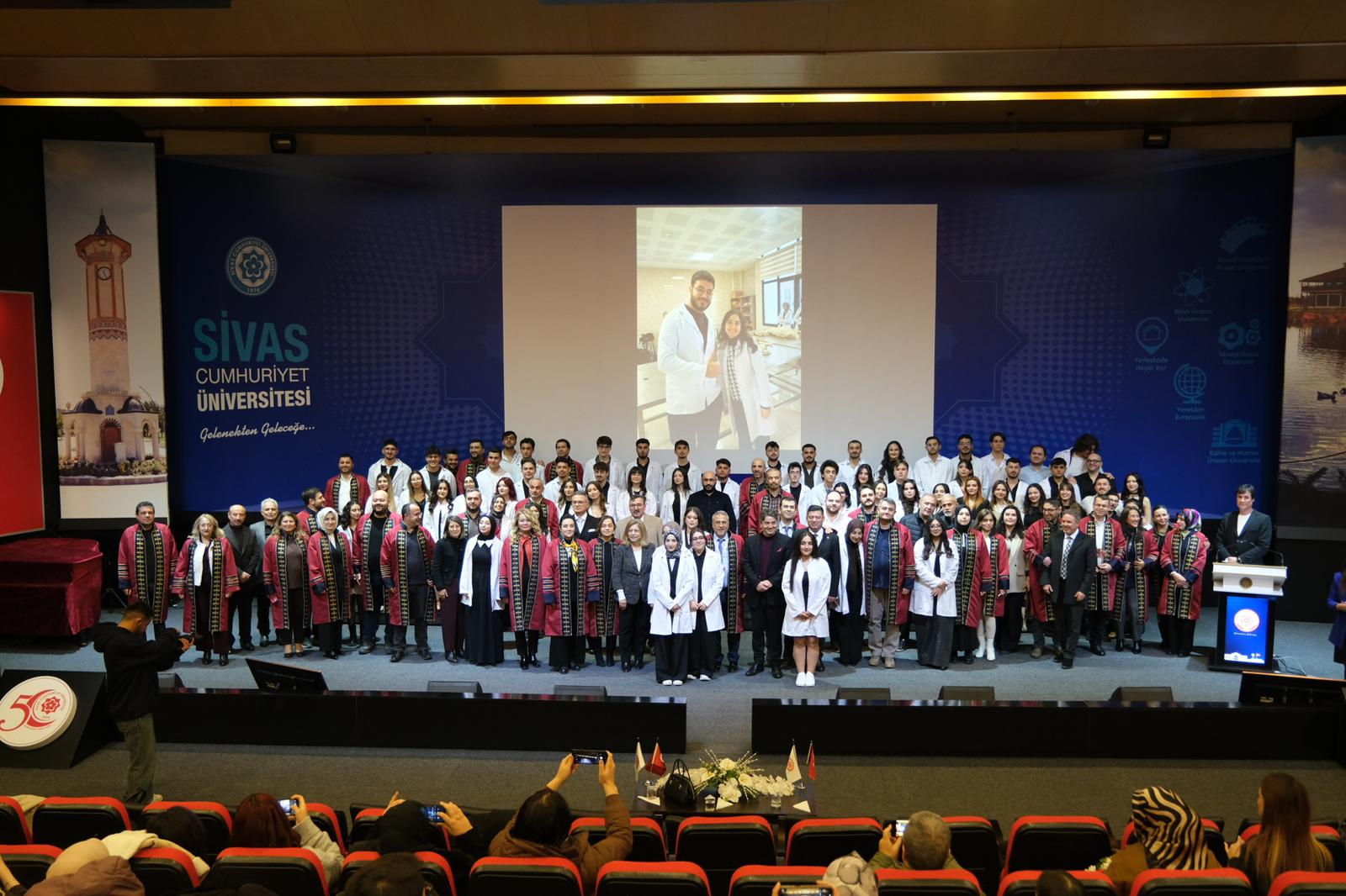 Sivas Cumhuriyet Üniversitesi Veteriner Fakültesi 1. sınıf öğrencileri için Beyaz Önlük Giyme Töreni gerçekleştirildi. Törene; Rektör Yardımcımız Prof. Dr. Hayati Öztürk, Rektör Danışmanlarımız Doç. Dr. Nevzat Balıkçıoğlu ve Özdemir Yalçın, Veteriner Fakültesi Dekanı Prof. Dr. Barış Atalay Uslu, Veteriner Hekimler Odası Başkanı Ahmet Koçak, dekanlar, enstitü müdürleri, MYO müdürleri, akademisyenler, idari personel, veliler ve öğrenciler katıldı.