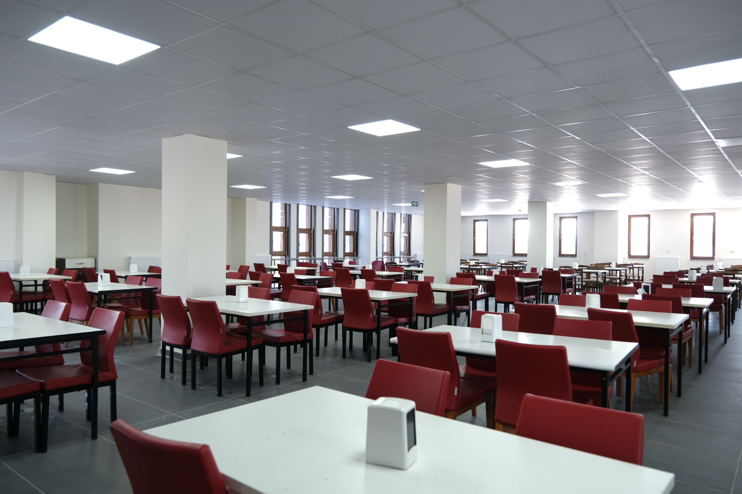 Yeni hizmet binasında faaliyet gösteren personel yemekhanesi, modern tasarımı ve gelişmiş altyapısıyla üniversite çalışanlarına daha kaliteli ve konforlu bir ortam sunacak.