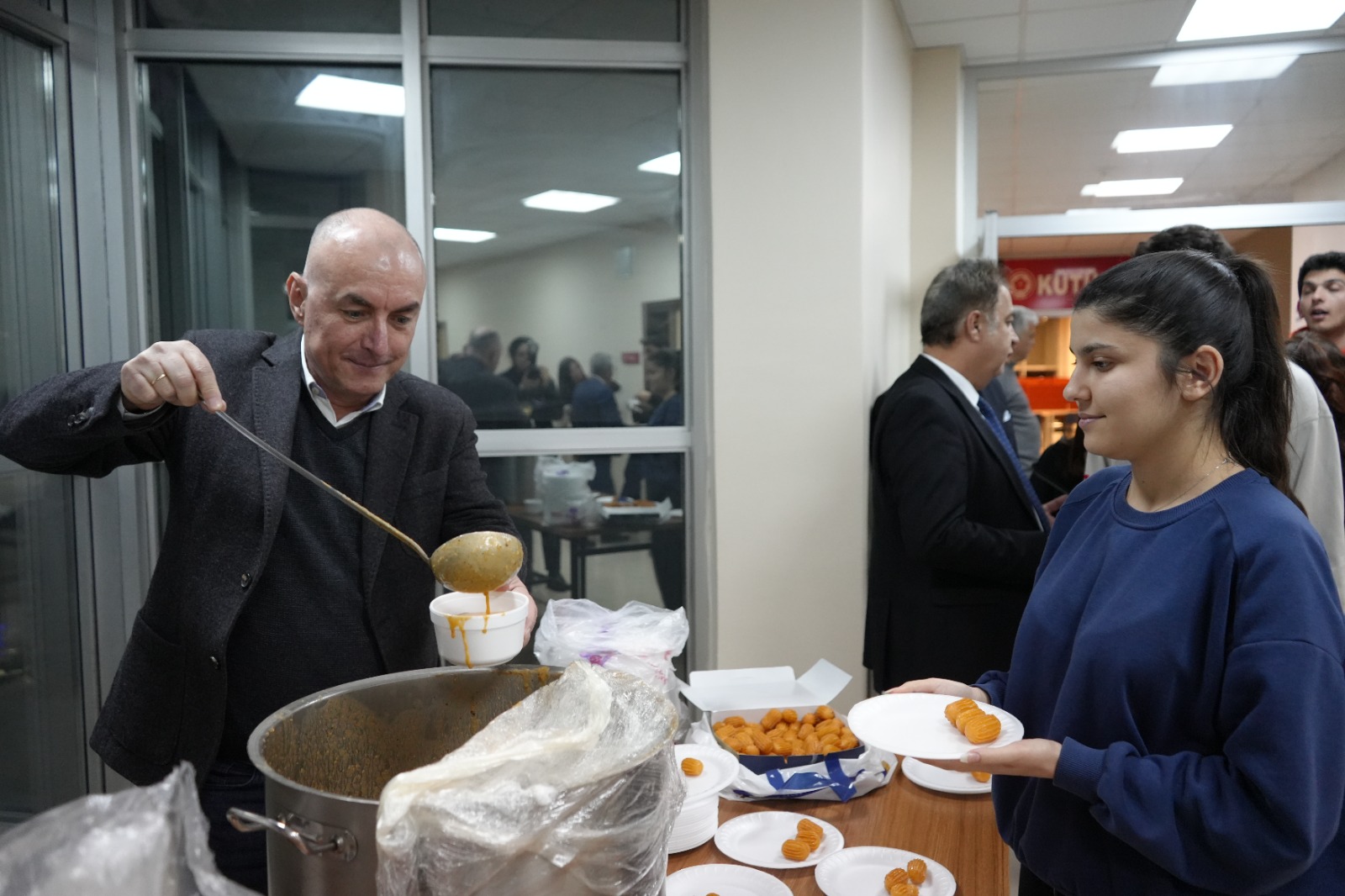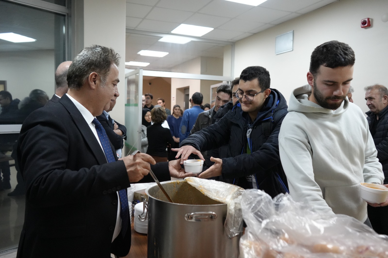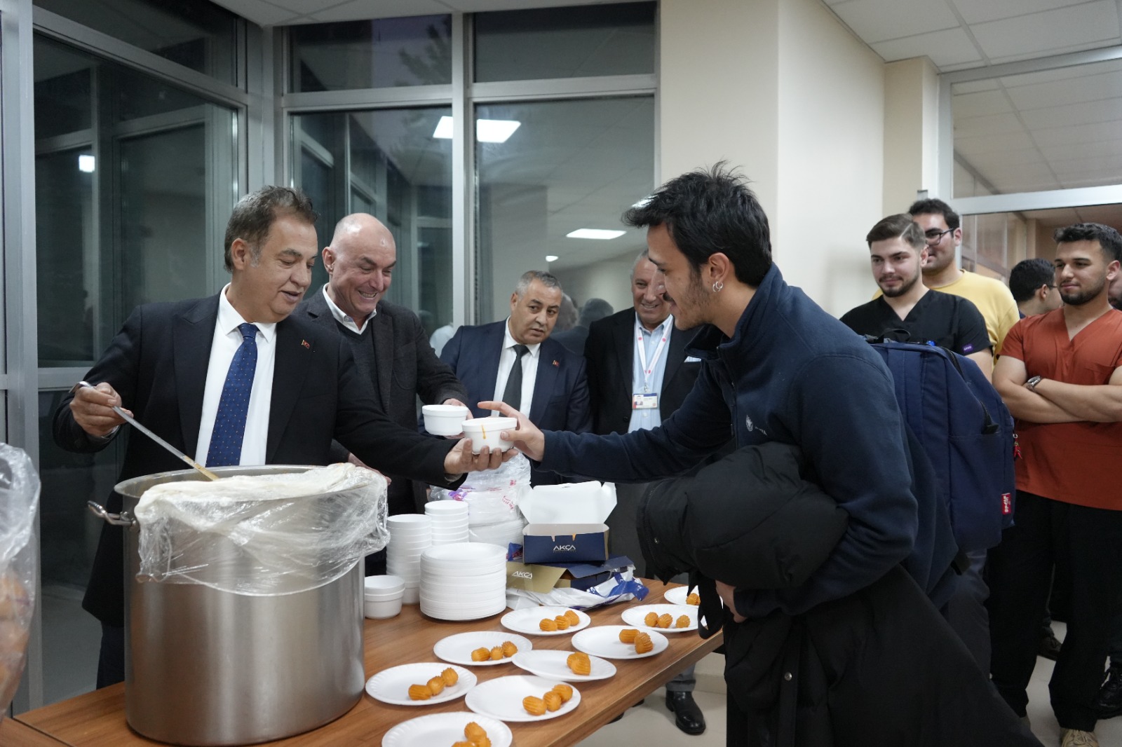 Rektörümüz Prof. Dr. Ahmet Şengönül, Üniversitemiz Tıp Fakültesi derslik binasında bulunan kütüphaneyi ziyaret ederek staj sınavlarına yoğun şekilde hazırlanan öğrencilerle bir araya geldi. Samimi bir ortamda gerçekleşen ziyarette Rektörümüz, öğrencilere tatlı ve çorba ikramında bulunarak moral verdi.
