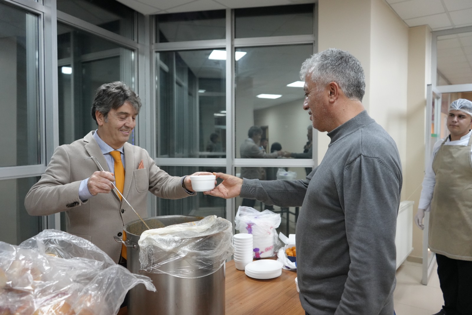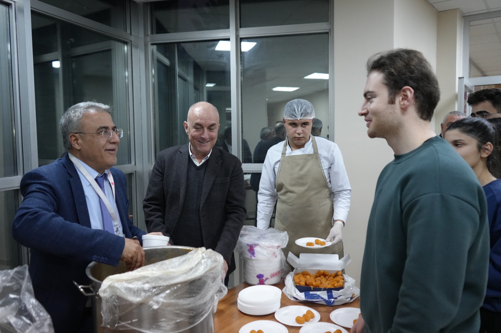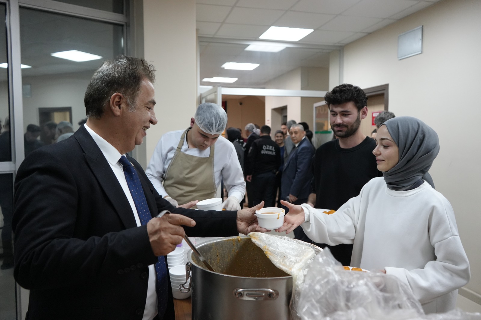 Rektörümüz Prof. Dr. Ahmet Şengönül, Üniversitemiz Tıp Fakültesi derslik binasında bulunan kütüphaneyi ziyaret ederek staj sınavlarına yoğun şekilde hazırlanan öğrencilerle bir araya geldi. Samimi bir ortamda gerçekleşen ziyarette Rektörümüz, öğrencilere tatlı ve çorba ikramında bulunarak moral verdi.