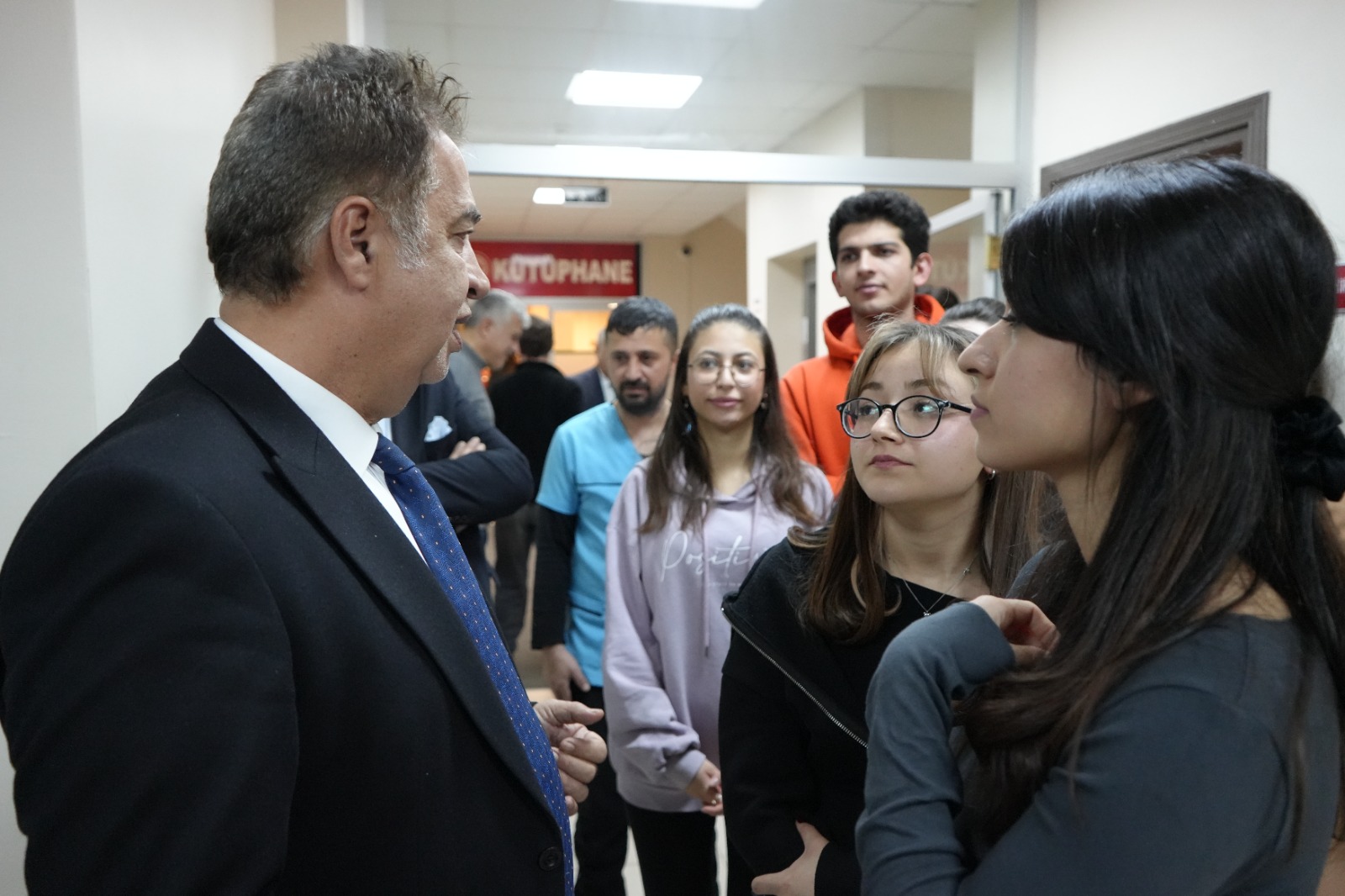 Rektörümüz Prof. Dr. Ahmet Şengönül, ziyaret sırasında öğrencilerin taleplerini de dinledi. Eğitim süreci, kütüphane olanakları ve kampüs yaşamına ilişkin talep ve önerileri değerlendirerek, her zaman öğrencilerin yanında olduklarını vurguladı.