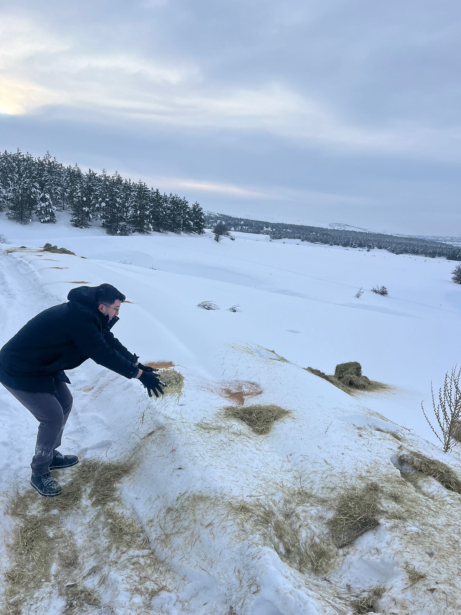 Rektörümüz Prof. Dr. Ahmet Şengönül’ün talimatları doğrultusunda yürütülen çalışmada, Sivas’ta etkili olan kar yağışı ve soğuk hava koşullarının yabani hayvanlar üzerindeki olumsuz etkilerini azaltmak amacıyla üç farklı beslenme noktasında yemleme yapıldı. Çalışmaya Veteriner Fakültesi Hayvan Hastanesi Başhekim Yardımcısı Dr. Öğr. Üyesi Sefer Türk ile Sivas’ta ikamet eden öğrenciler katıldı.