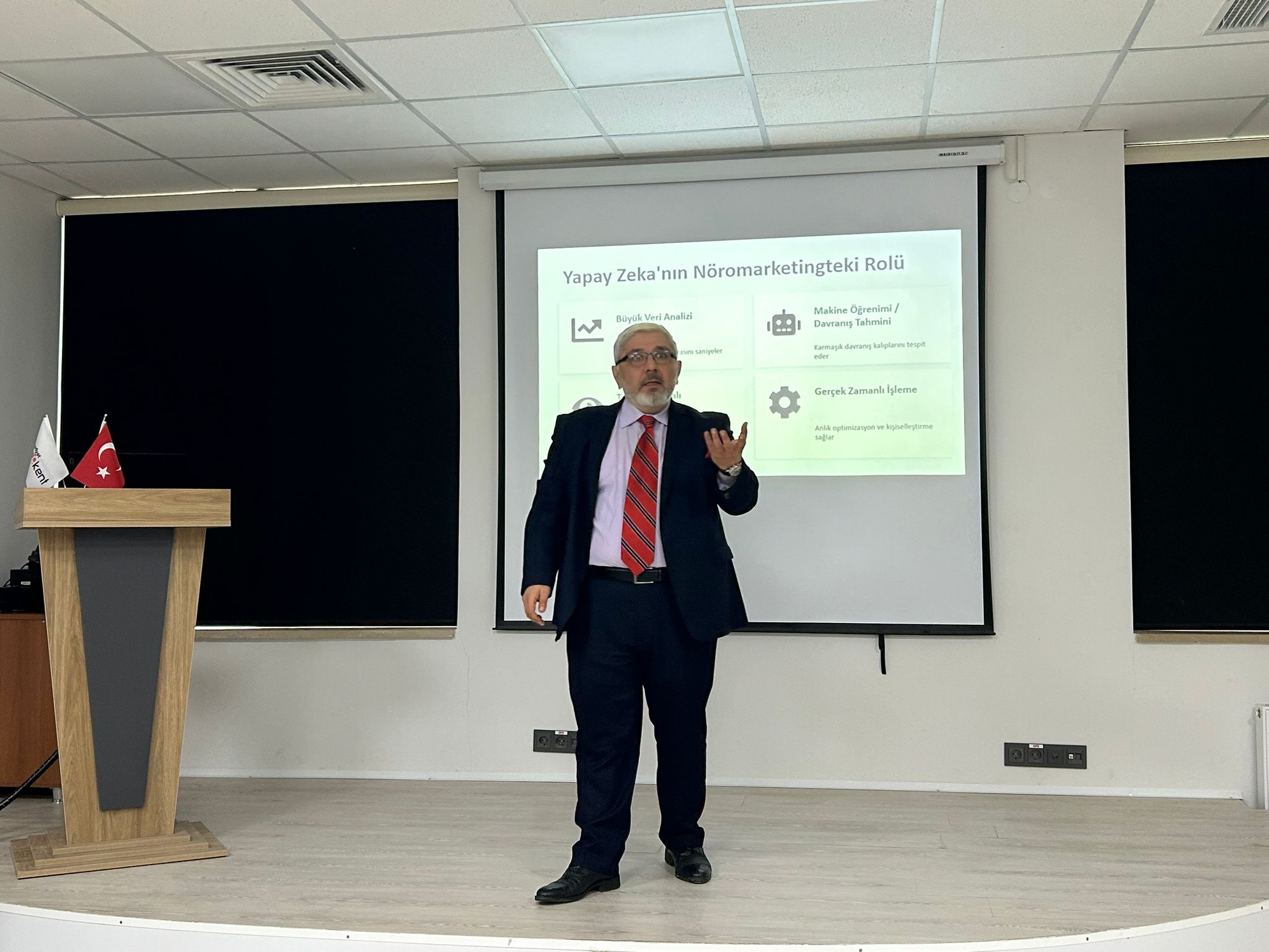 Yapay zekâ ve nöropazarlamanın psikoloji, nörobilim ve veri analizini bir araya getiren disiplinlerarası bir alan sunduğunu belirten Doç. Dr. Darıcı, EEG gibi yöntemlerle algı, dikkat ve duygusal tepkilere ilişkin doğrudan veriler elde edilebildiğini ifade etti. Renklerin ve görsel mesajların insan psikolojisi üzerindeki etkilerine de değinen Darıcı, bu tür bilimsel bulguların iletişim ve pazarlama stratejilerinde önemli bir referans noktası oluşturduğunu kaydetti.