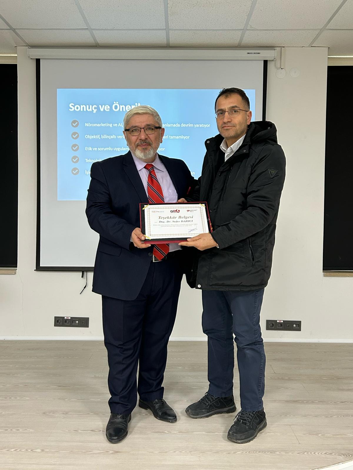 Eğitim sonunda katkılarından dolayı Doç. Dr. Sefer Darıcı’ya teşekkür belgesi takdim edildi.