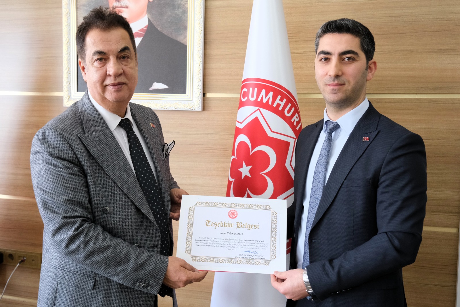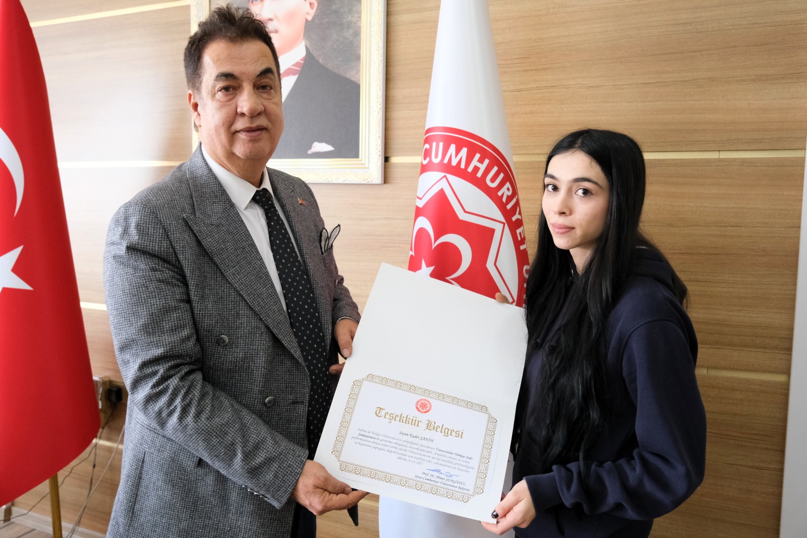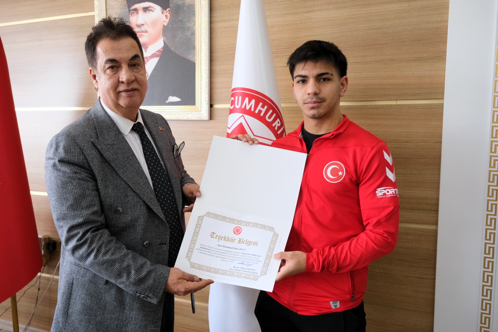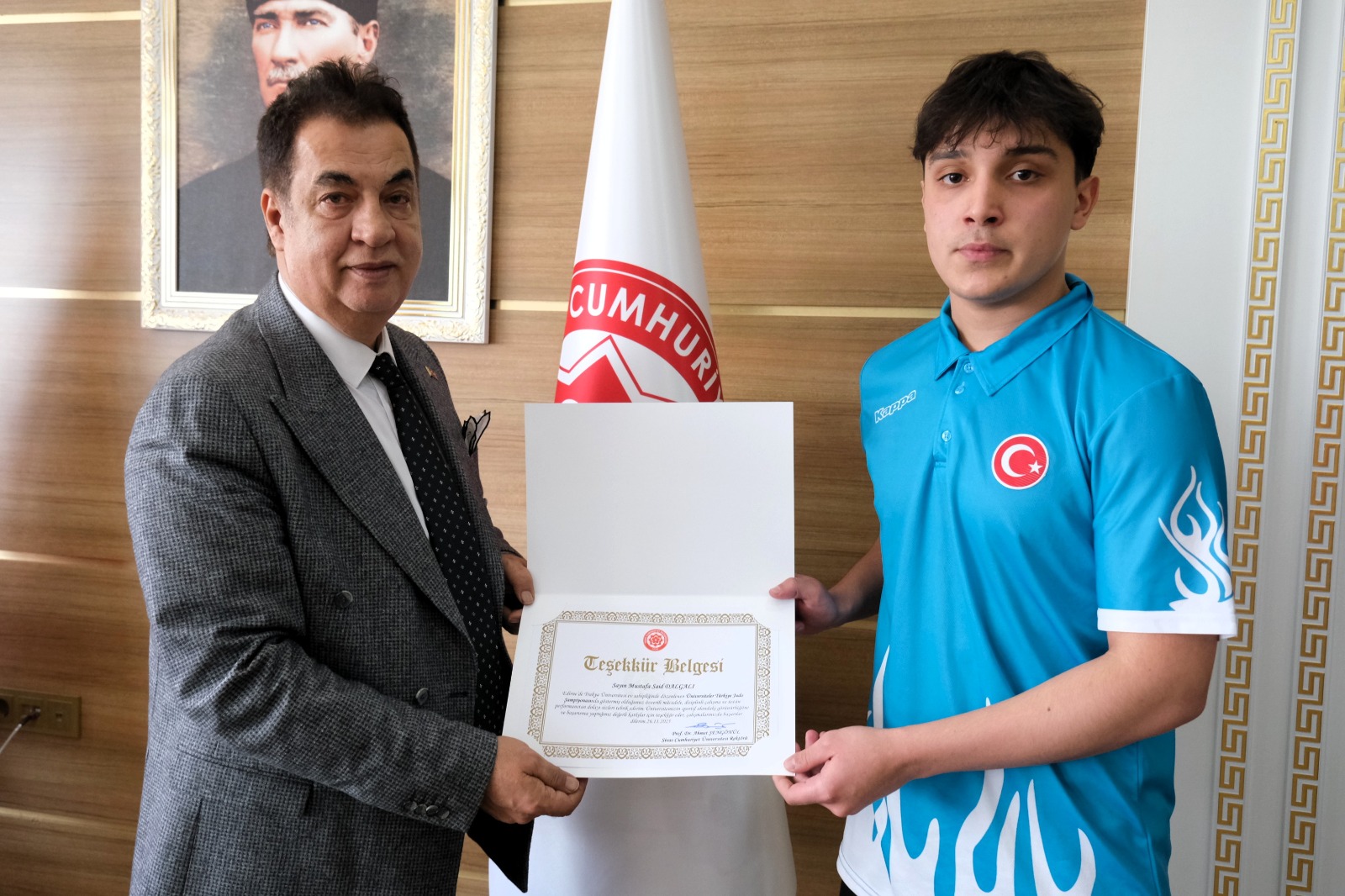 Elde edilen bu başarıların ardından Rektörümüz Prof. Dr. Ahmet Şengönül, sporcularımız ve antrenörlerine teşekkür belgesi takdim ederek başarılarından dolayı tebrik etti. Yapmış olduğu konuşmada ise, “Üniversitemizi ulusal düzeyde başarıyla temsil eden öğrencilerimizi gönülden kutluyorum. Spor, disiplinin, azmin ve kararlılığın en somut göstergelerinden biridir. Elde ettiğiniz bu dereceler sadece bireysel bir başarı değil, aynı zamanda üniversitemizin sportif vizyonunun da bir yansımasıdır. Sizlerle gurur duyuyor, başarılarınızın artarak devam etmesini diliyorum. Bu süreçte emeği geçen kıymetli antrenörlerimize de ayrıca teşekkür ediyorum.” dedi.