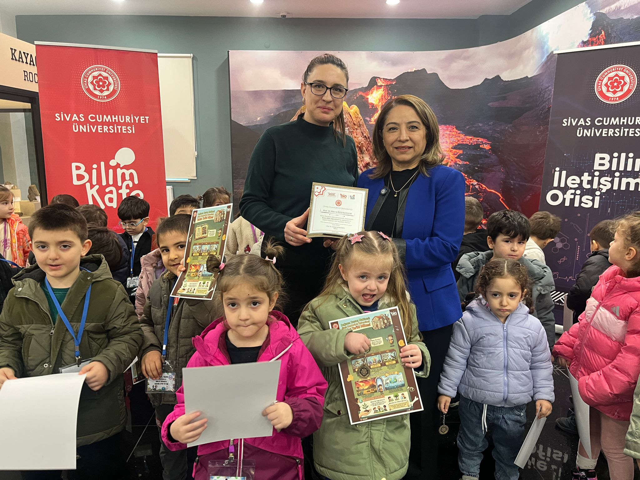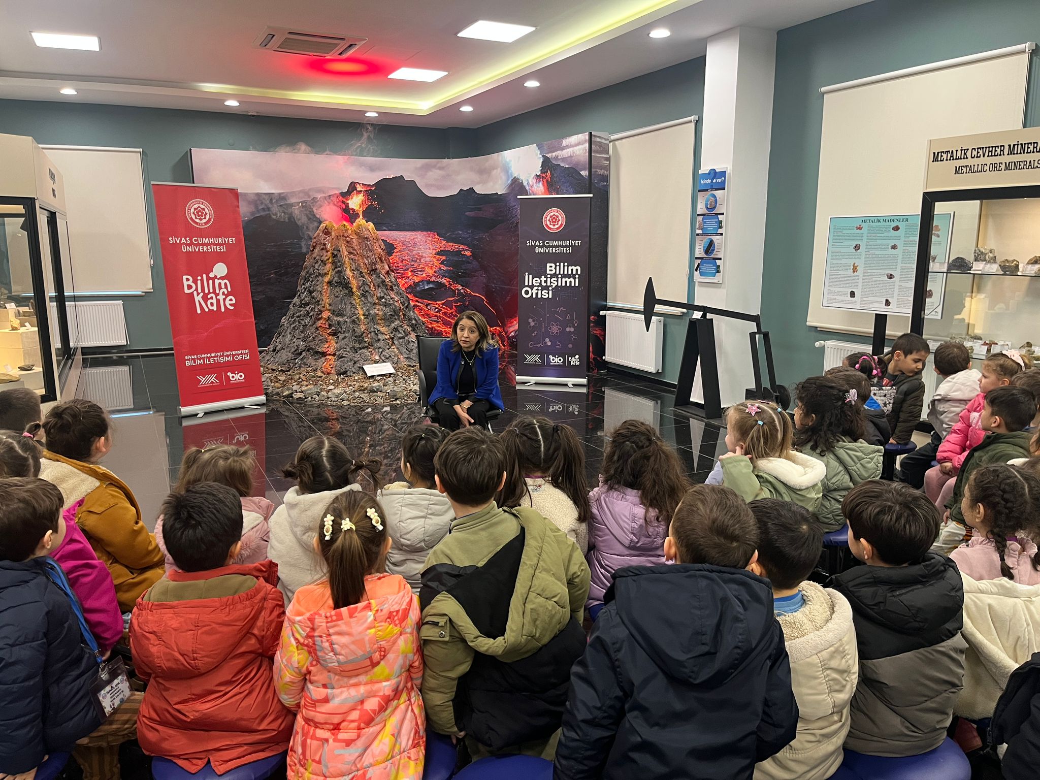 Bilim kafe etkinliğinin misafirleri bu kez anaokulu öğrencileri oldu. Müze Müdürü Prof. Dr. Nazire Özgen Erdem, minik öğrencilere müzelerin milyonlarca yıllık doğal geçmişini günümüze taşıyan önemli bilim merkezleri olduğunu anlattı. Fosiller, mineraller, kayaçlar ve madenler ile bitki ve hayvan koleksiyonları hakkında bilgiler verdi.
