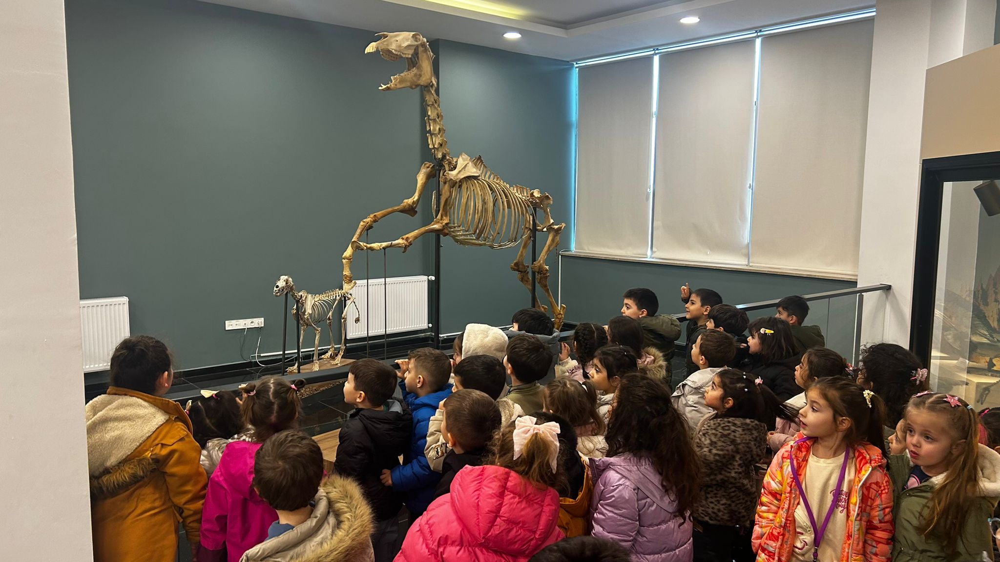 Program boyunca öğrenciler, müzede sergilenen fosil örneklerini ve doğal yaşam koleksiyonlarını yakından inceleme fırsatı buldu. İnteraktif şekilde ilerleyen etkinlikte minikler, merak ettikleri soruları doğrudan uzmanına sorarak bilimsel meraklarını giderdi.
