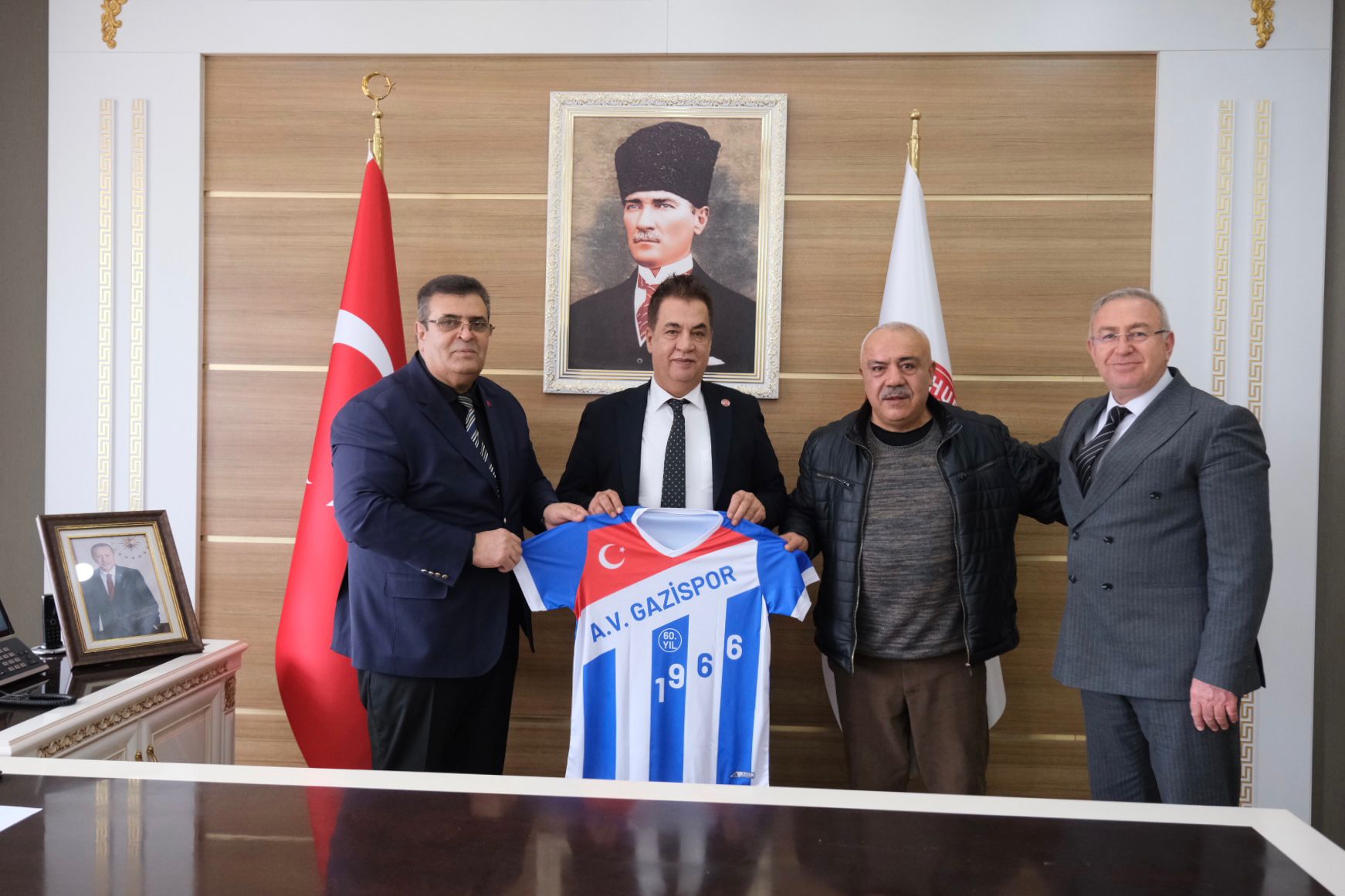 Abdulvahabigazi Spor Kulübü Başkanı Muzaffer Işıklar ve Teknik Direktör Metin Özkoçak, Rektörümüz Prof. Dr. Ahmet Şengönül’ü makamında ziyaret etti.