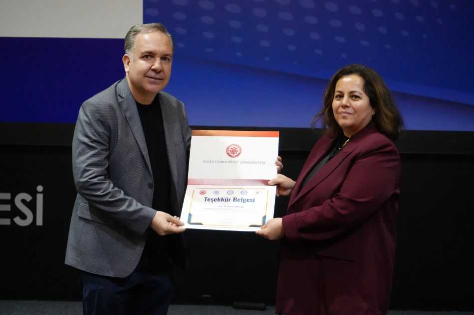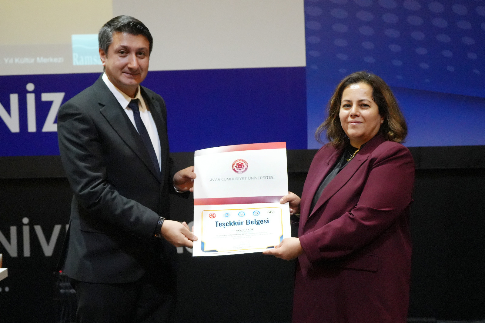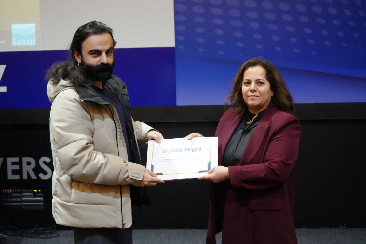 Program kapsamında; doğa koruma çalışmalarına ve çevre bilincinin gelişmesine sundukları katkılardan dolayı Mühendislik Fakültesi Çevre Mühendisliği Bölümü Öğretim Üyesi Prof. Dr. Meltem Sarıoğlu Cebeci, Fen Fakültesi Biyoloji Bölümü Öğretim Üyesi Doç. Dr. Seher Dirican ve Sivas Doğa Koruma ve Milli Parklar Şube Müdür V. Mehmet Yıldız’a teşekkür belgeleri takdim edildi.
