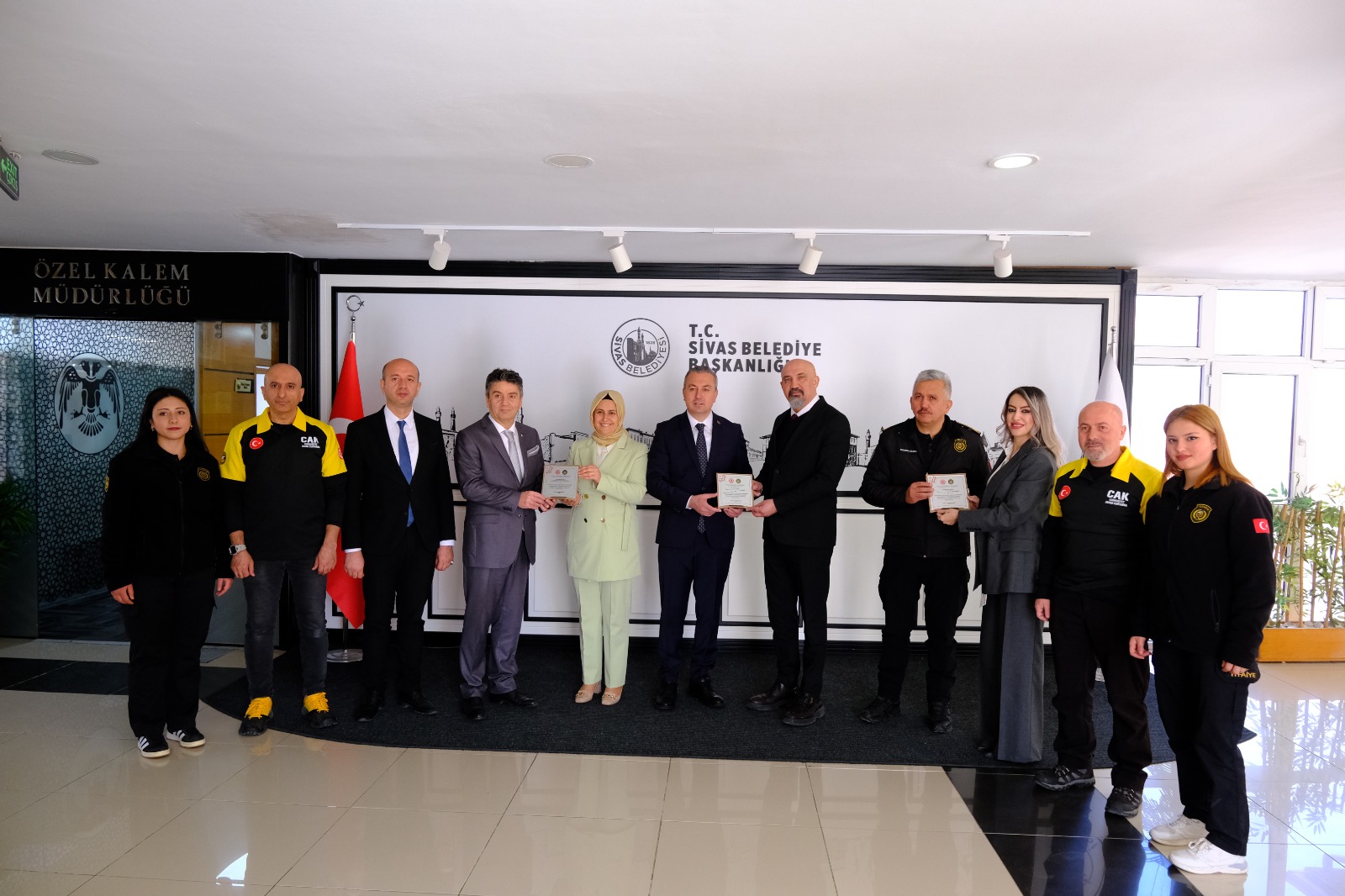 Ziyarette, Sivas Belediye Başkanı Dr. Adem Uzun, Sivas AFAD Müdürü Cemal Kurban ve 112 Acil Çağrı Merkezi Müdürü Hakkı Polat ile emeği geçen personele, verdikleri desteklerden dolayı plaket takdim edildi.