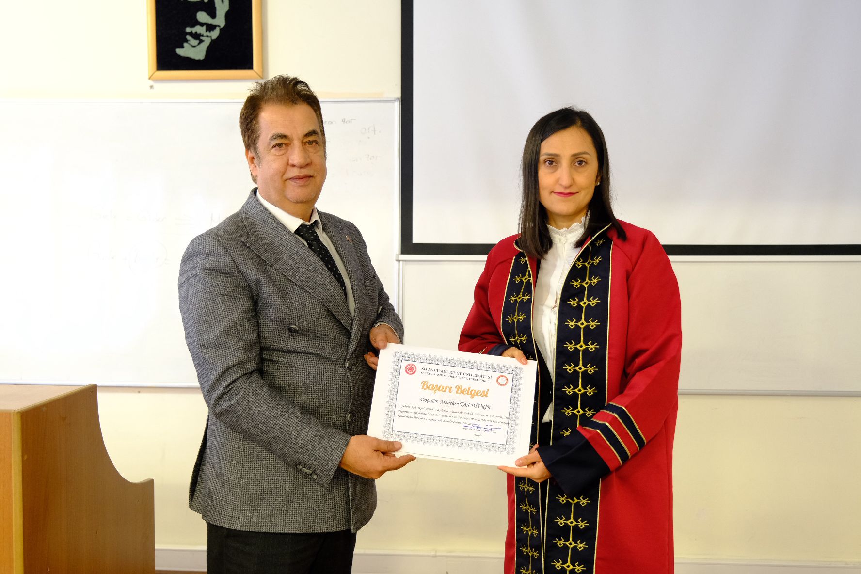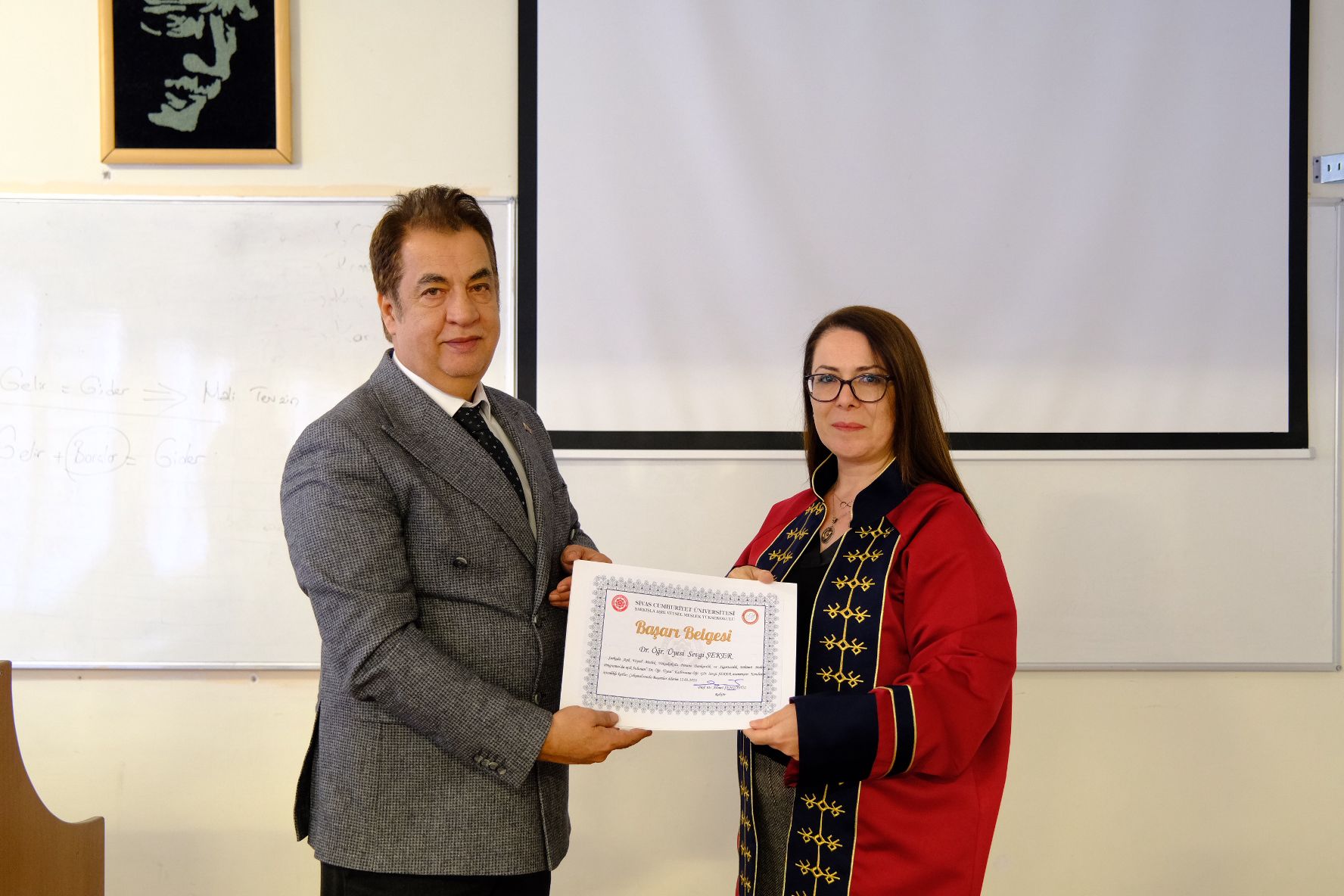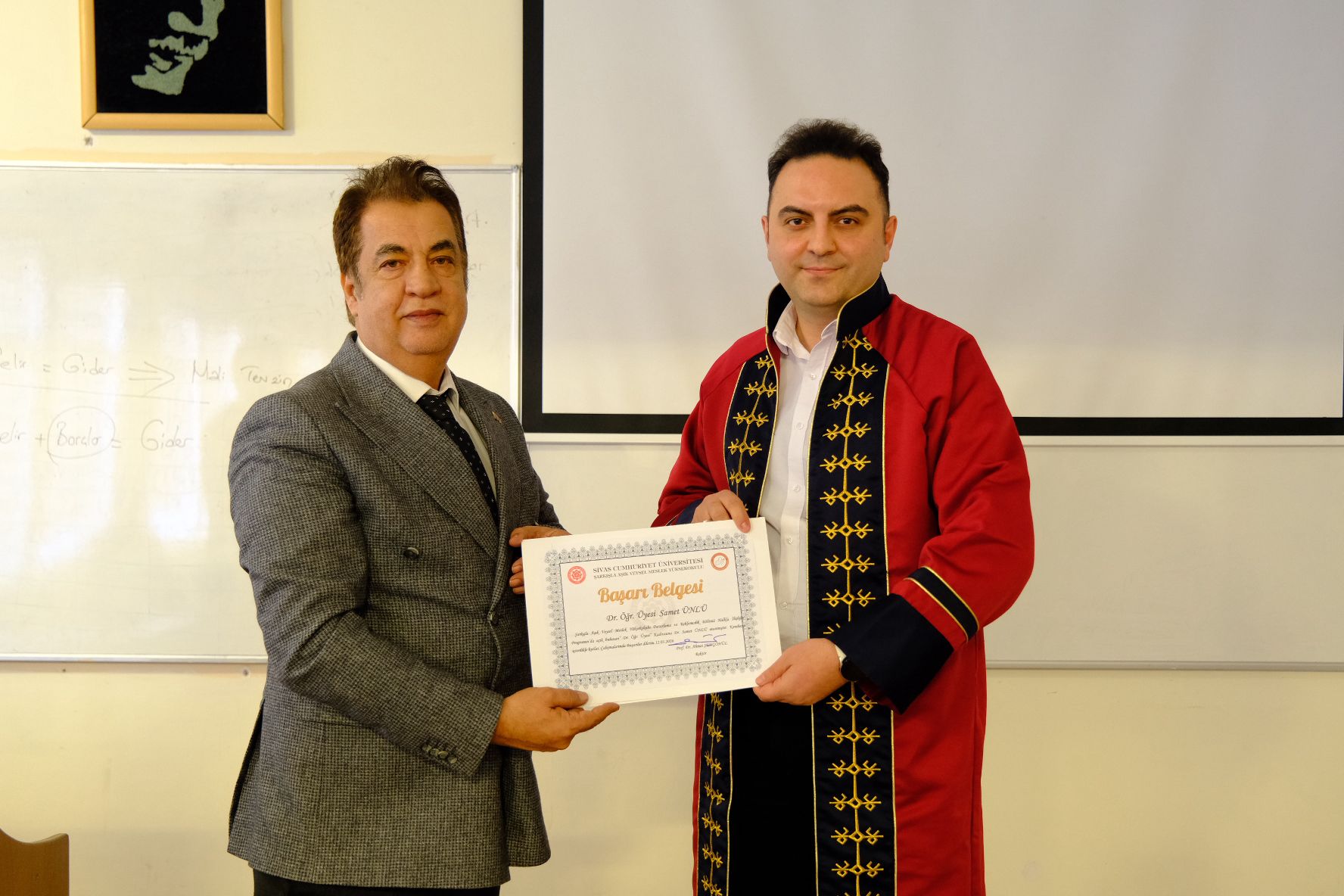 Ziyaret kapsamında düzenlenen toplantıda, yüksekokulun mevcut akademik faaliyetleri ele alınarak, talep ve görüşler dinlendi. Programın ilerleyen bölümünde Rektörümüz Prof. Dr. Ahmet Şengönül, son dönemde ataması gerçekleşen öğretim üyelerine cübbelerini giydirerek, belgelerini takdim etti.