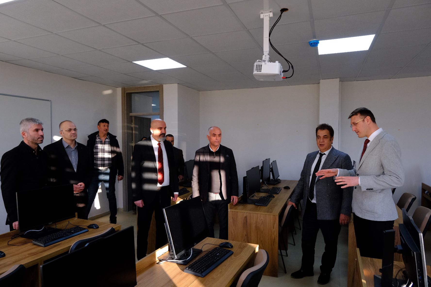 Ziyaret kapsamında Rektörümüz Prof. Dr. Ahmet Şengönül, yüksekokul bünyesinde yeni hizmete sunulan ve ileri donanıma sahip 30 bilgisayardan oluşan bilgisayar laboratuvarı ile kütüphane başta olmak üzere yüksekokul binasını gezerek, Yüksekokul Müdürü Doç. Dr. Sait Bardakçı’dan yürütülen çalışmalar hakkında bilgi aldı.