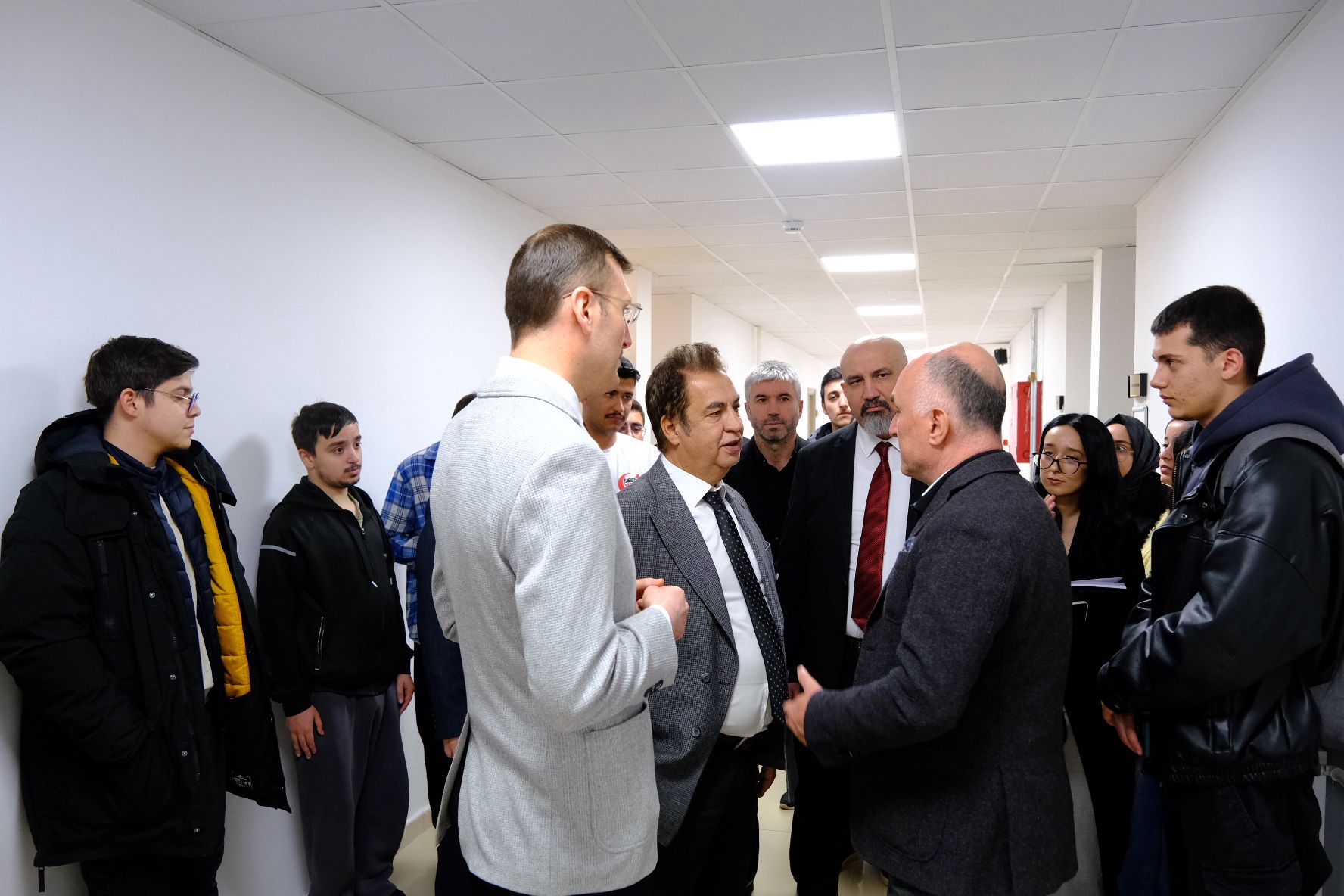 Ziyaret sırasında öğrencilerle de bir araya gelen Rektörümüz Prof. Dr. Ahmet Şengönül, öğrencilerin görüş, öneri ve taleplerini dinledi.