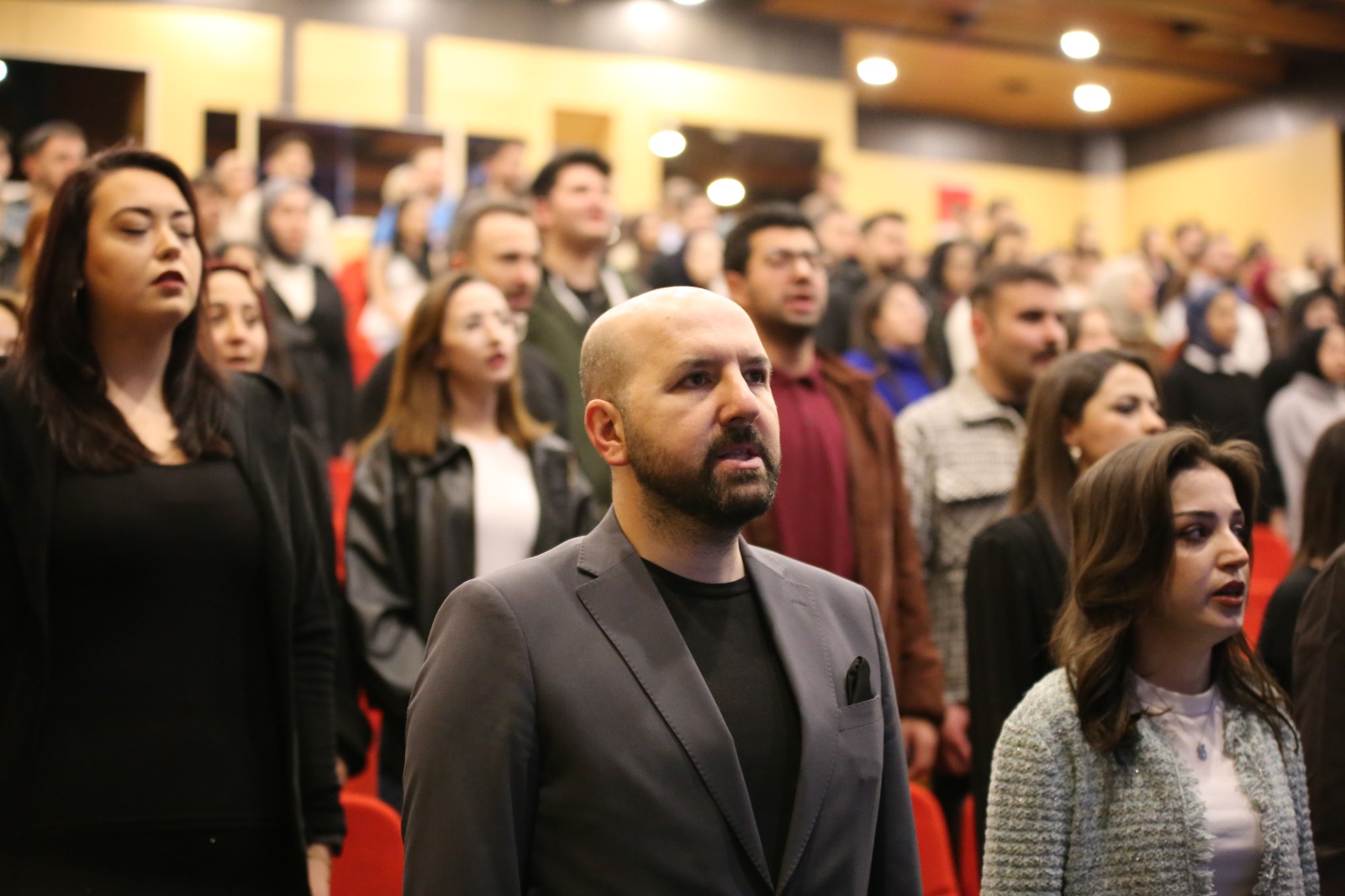 100. Yıl Kültür Merkezi’nde gerçekleştirilen etkinliğe; Rektörümüz Prof. Dr. Ahmet Şengönül, Rektör Yardımcımız Prof. Dr. Salih Cem İnan, Genel Sekreterimiz Prof. Dr. Yüksel Aydın, Rektör Danışmanımız Doç. Dr. Nevzat Balıkçıoğlu, Atatürk İlke ve İnkılap Tarihi Uygulama ve Araştırma Merkezi Müdürü Dr. Öğr. Üyesi Olcay Kahraman, akademisyenler ve öğrenciler katıldı.