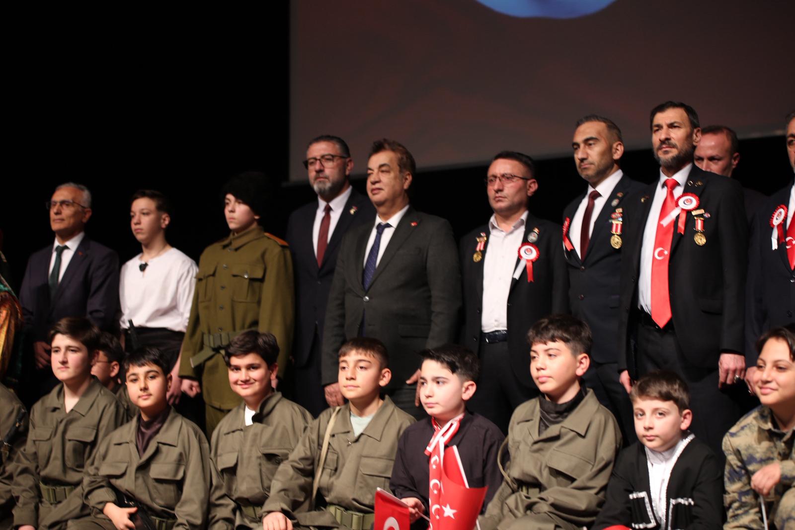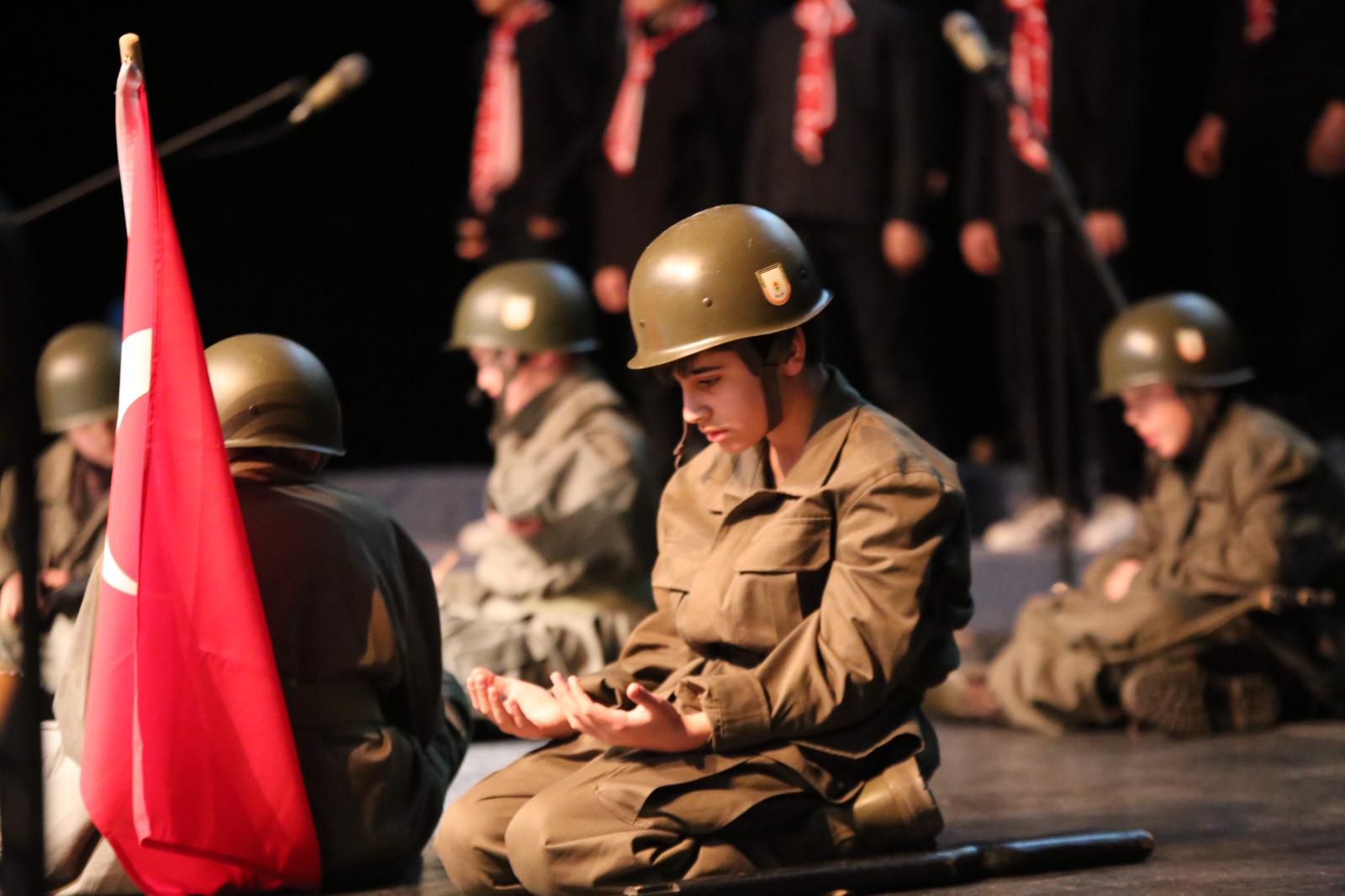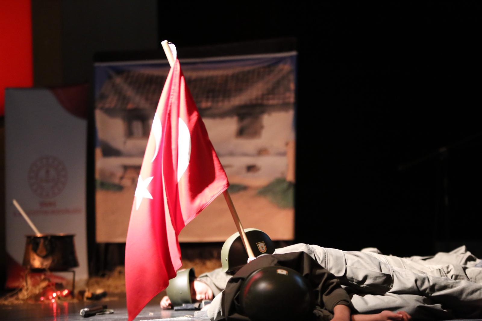 Programın sonunda Kadı Burhaneddin İmam Hatip Ortaokulu öğrencileri tarafından sahnelenen “Bir Milletin Fedakârlığı – Bir Bayrağın Hürriyeti: Çanakkale” adlı tiyatro oyunu izleyenleri derinden etkiledi. Öğretmen ve öğrencilerin özveriyle hazırladığı gösteri, Çanakkale’de yazılan destanı sahneye taşıyarak izleyicilere duygu dolu anlar yaşattı.